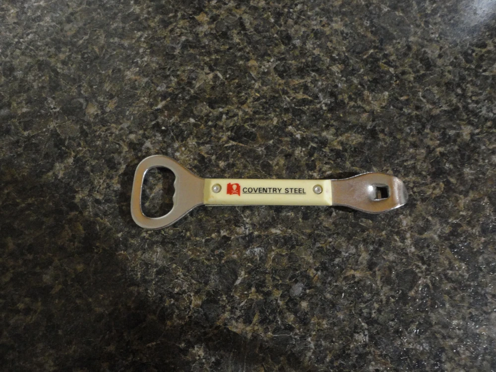 Vintage advertising can opener. Coventry Steel Coventry Steel is believed to still be in business in Cleveland Ohio, despite them buying their steel can opener promotional products from Hong Kong!