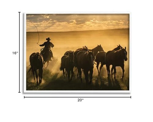 Add dimension to any room with our textured Framed Giclee Artwork. Our framed artwork is securely mounted into a 1.5-inch thick wood grain frame and ready to hang. Frames are available in three alluring styles: black, gray farmhouse and white. In addition, you should check out our oversized options if you want a statement piece. Wall Art is made in the USA. Framed Giclee Sizes Include Standard: 14 x 1.5 x 11 Large: 20 x 1.5 x 16 Oversized: 30 x 1.5 x 24 Wall Art is Ready to Hang with Hardware Free Hanging. No installation required. For Easy Set Up Lean or Layer Artwork on Shelf or Against Wall. Our giclée prints are carefully mounted on a durable MDF backing, and then perfectly finished in a 1.5 inch thick woodgrain frame. Mounted frame colors include black, gray farmhouse and white. Made In USA. Artwork Relates To: Animal, Horse, Mammal, Person, Saddle, Halter, Cowboy, Lasso, Rodeo, Photography Design by PBurchettePhoto