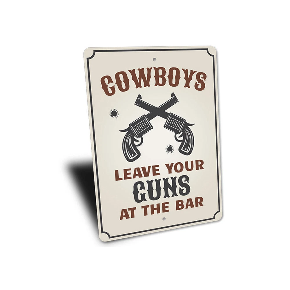 The Lizton Sign Shop Product Description Cowboys Leave Your Guns at The Bar, Party Barn Sign, Cowboy Guns, Cow Metal Sign **there may be slight variations in color and text spacing, however your sign will be very similar to the image above. Quality Aluminum Street Signs Sign Information Aluminum Brand New Sign Comes with rounded corners and pre-drilled for easy hanging. We use the highest quality materials - 100% USA-made! Great Gift Idea - Our signs truly make a one of a kind gift. Personalize the sign with the text you want to add. Custom text for the sign can be sent to us via email. A BRAND NEW SIGN!! All of our street signs are made of premium materials. The sign itself is made of aluminum and will never rust providing years of enjoyment indoors and outdoors. No Cheap plastic!! The Lizton Sign Shop specializes in quality personalized custom aluminum signs for any occasion. These make the perfect sign for any man cave, office, basement, garage, college dorm, kids bedroom, game room, bar, pub, tavern or countless other places. *Colors may vary slightly from one computer screen to the next but the image should be very close. All content and designs are subject to copyright and may not be reproduced in any form. Payment Methods We would prefer payment to be made through paypal but we also accept all major credit cards. If you select the credit card option please contact us after you make your purchase and we can walk you through the steps to make a secure payment. Return Policies We will accept returns within 30 days of the purchase date. The buyer is responsible for any costs to return the item or items. Returns will only be accepted for items that were damaged in shipping or if we made an error in the manufacturing of your item, i.e. spelling error.