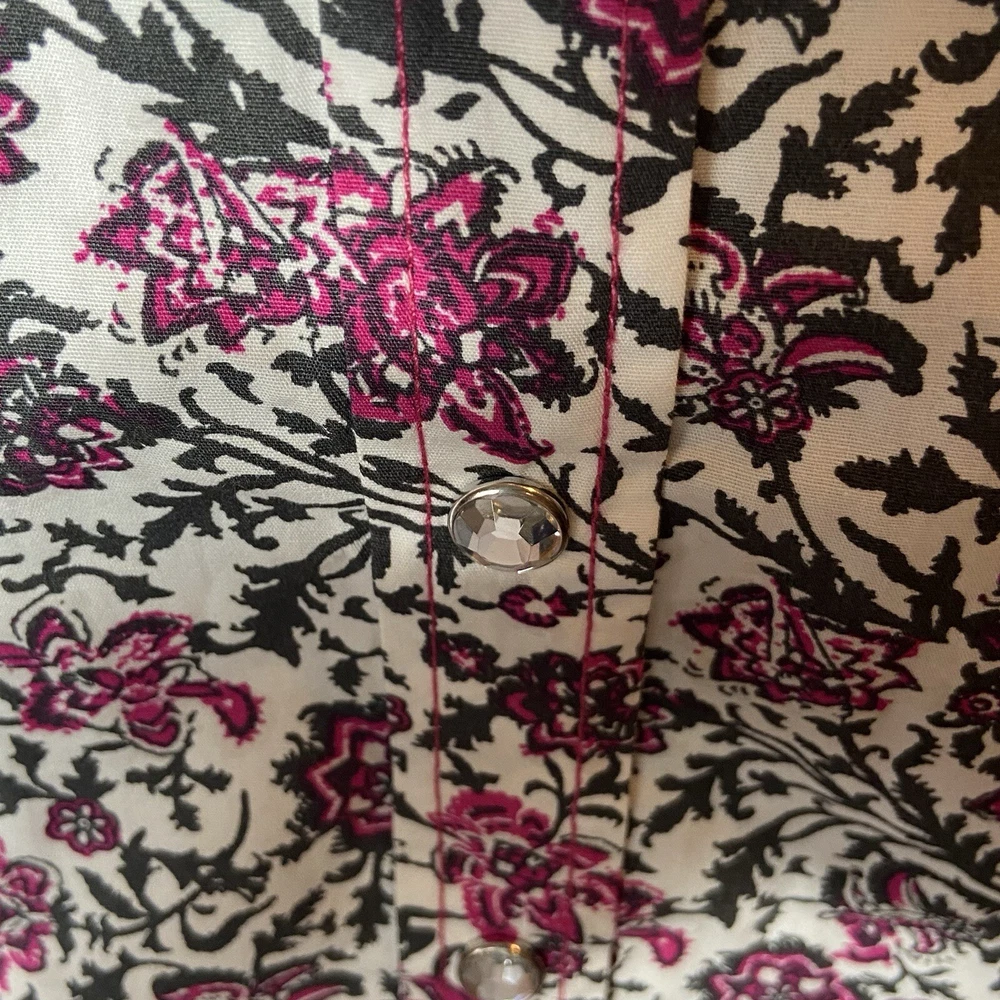 New with tags pink and green with gem snaps and studded details on back and pockets. Small. From Cavendar’s by CW Cowboy.