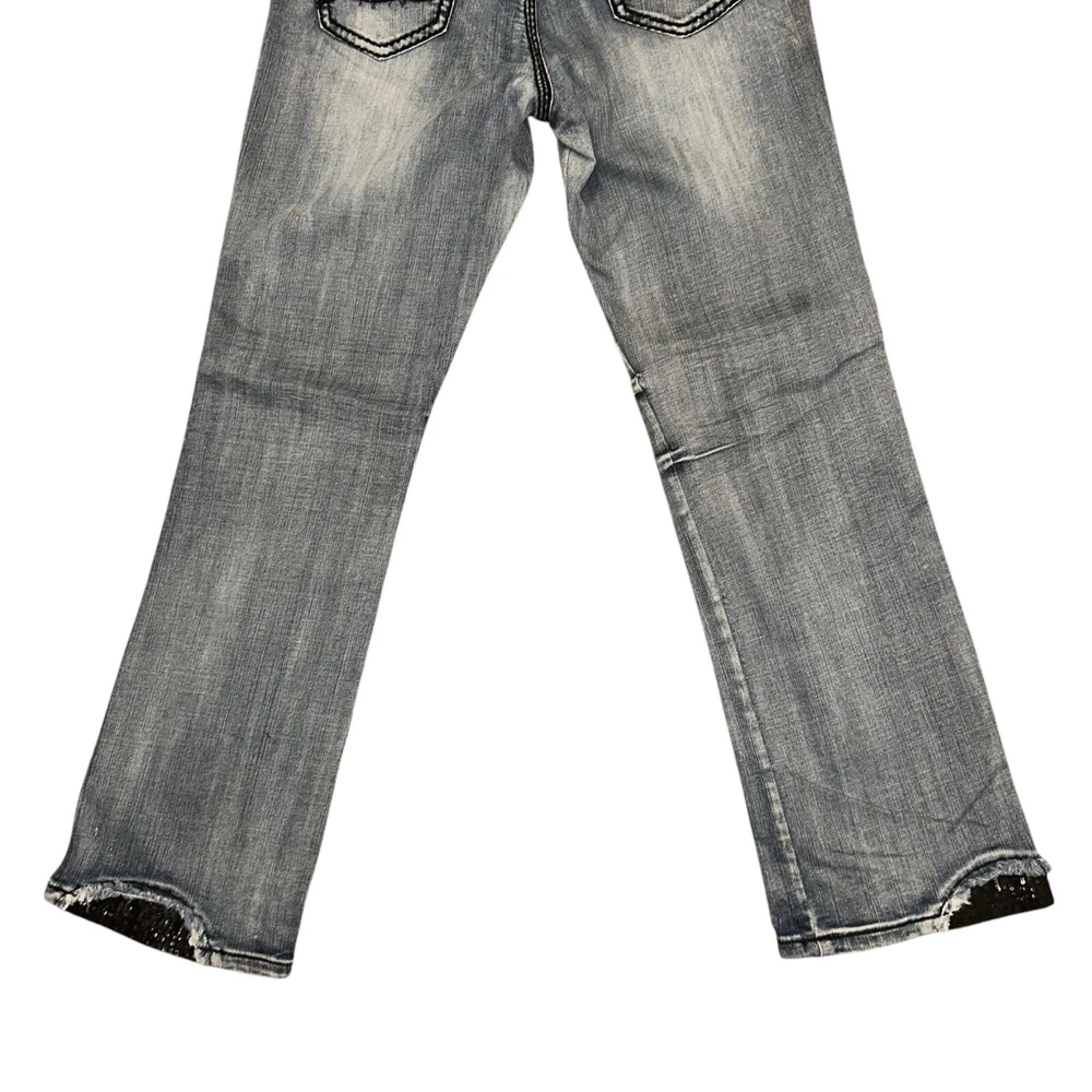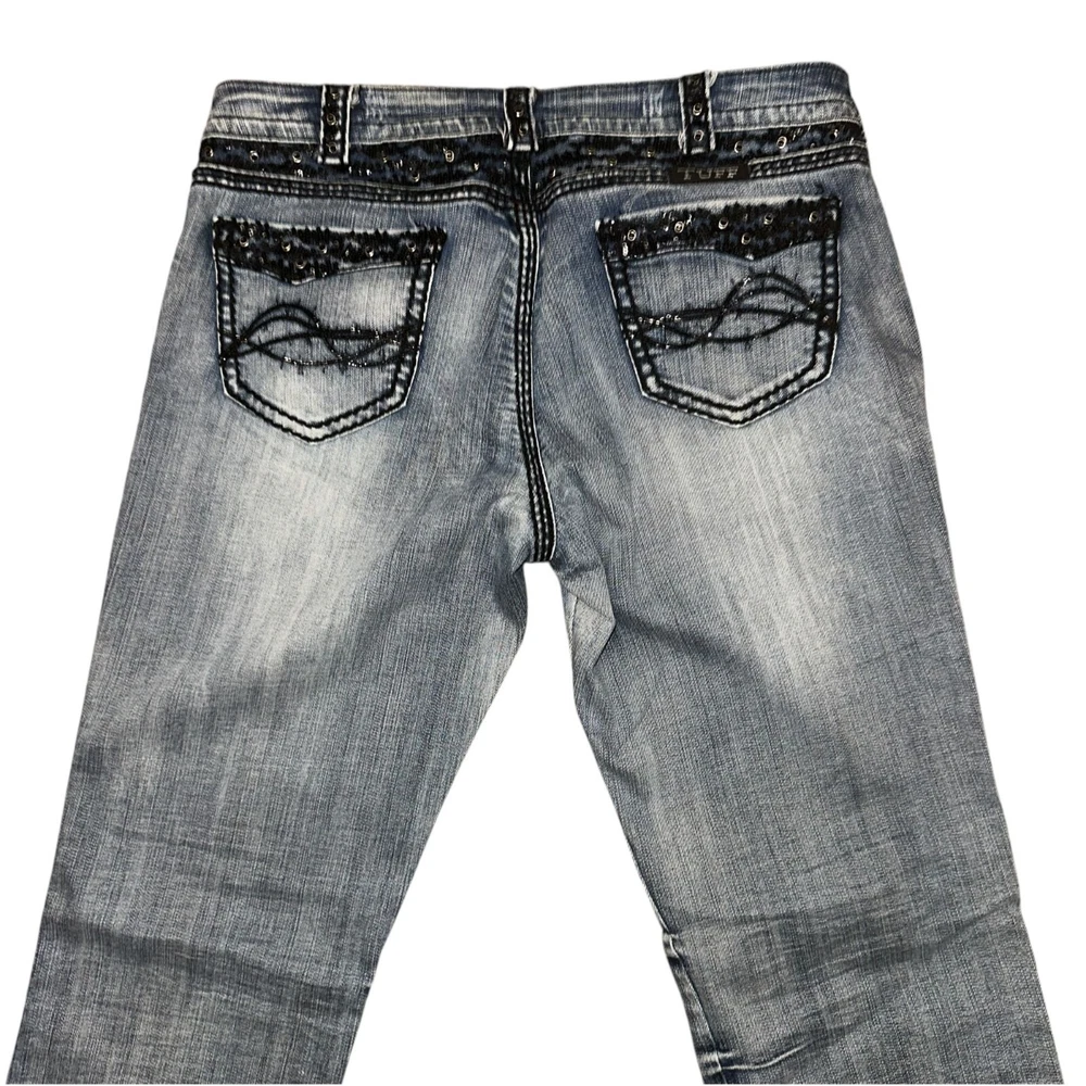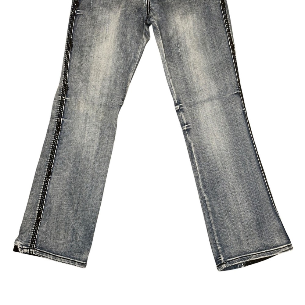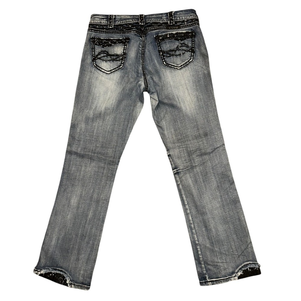 Rock And Roll Cowgirl Straight Leg Distressed Embellished Womens Jeans Size 34x32