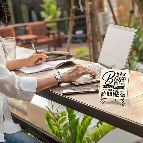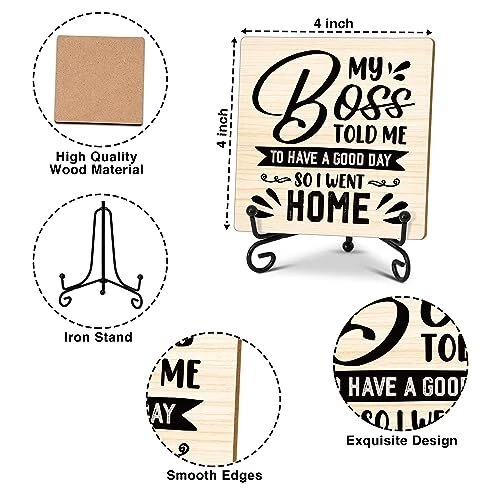 Coworker Gifts for Women Men, Home Office Desk Decor Wood Plaque with Stand,