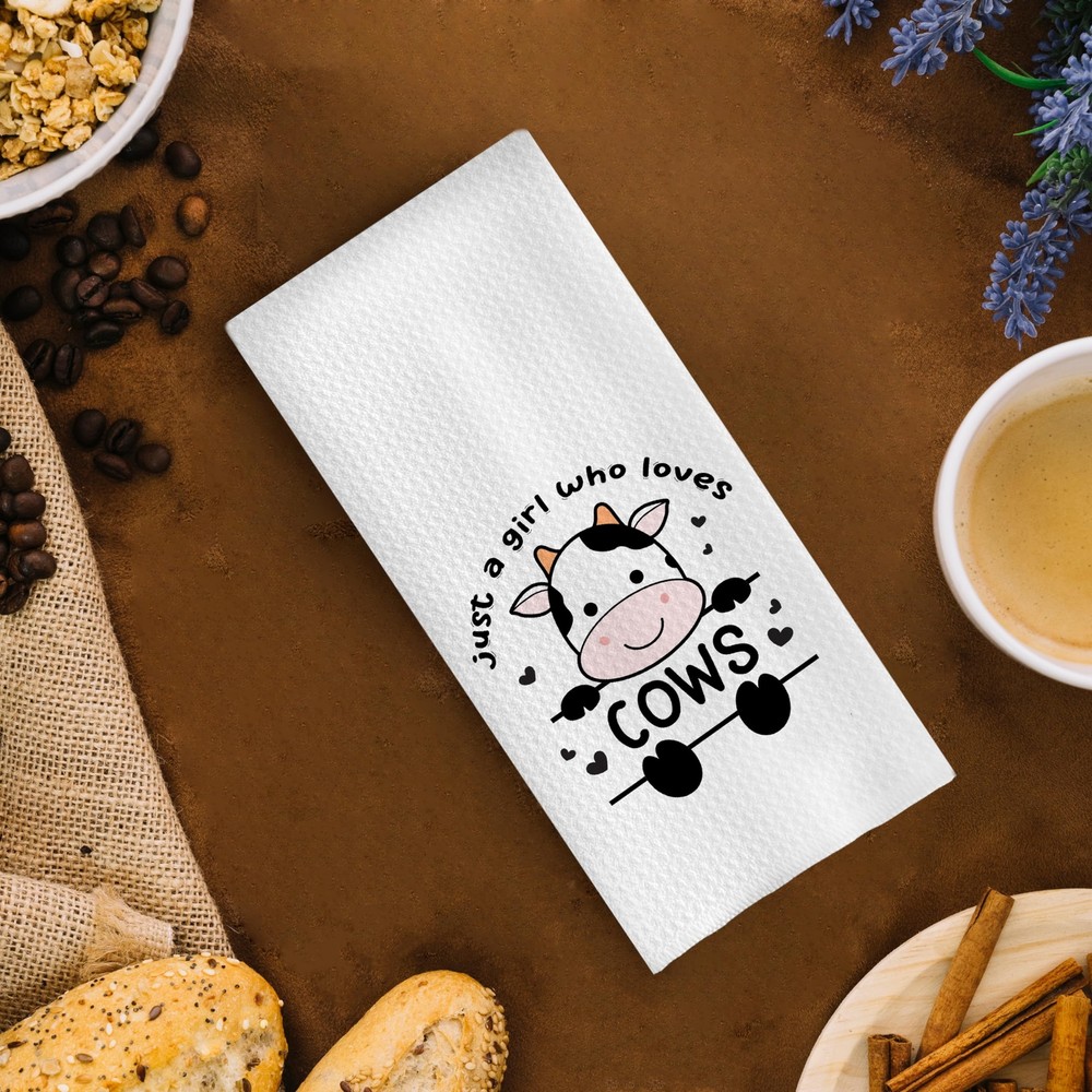 Cows Kitchen Towel Set Just A Girl Who Loves Cows 16x24 Inch Farmhouse Gift