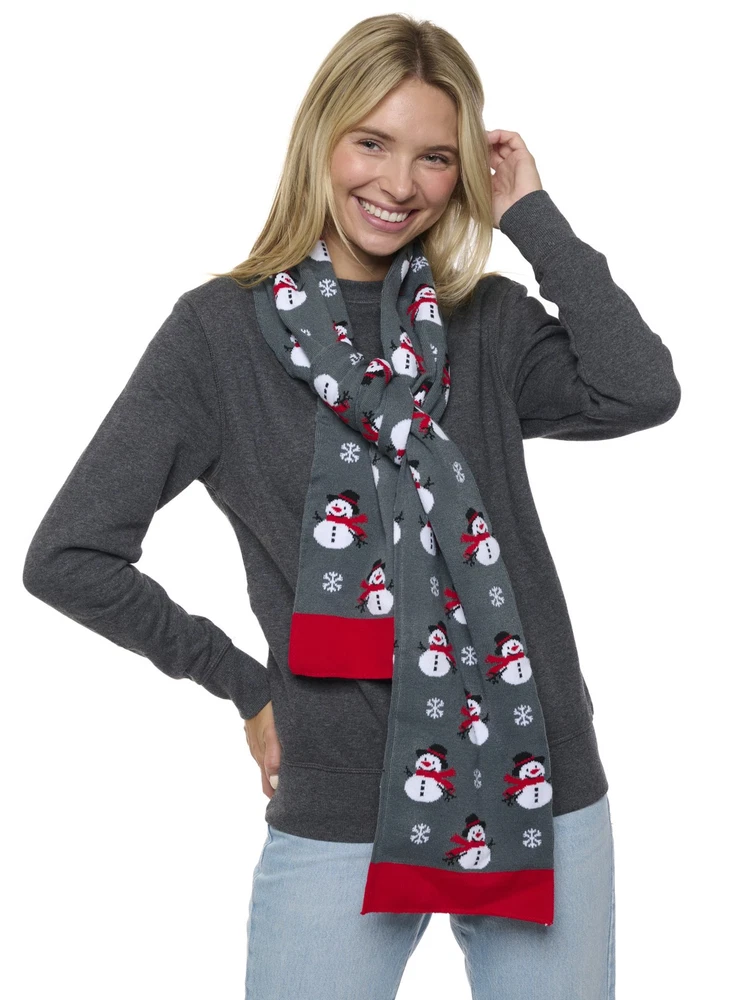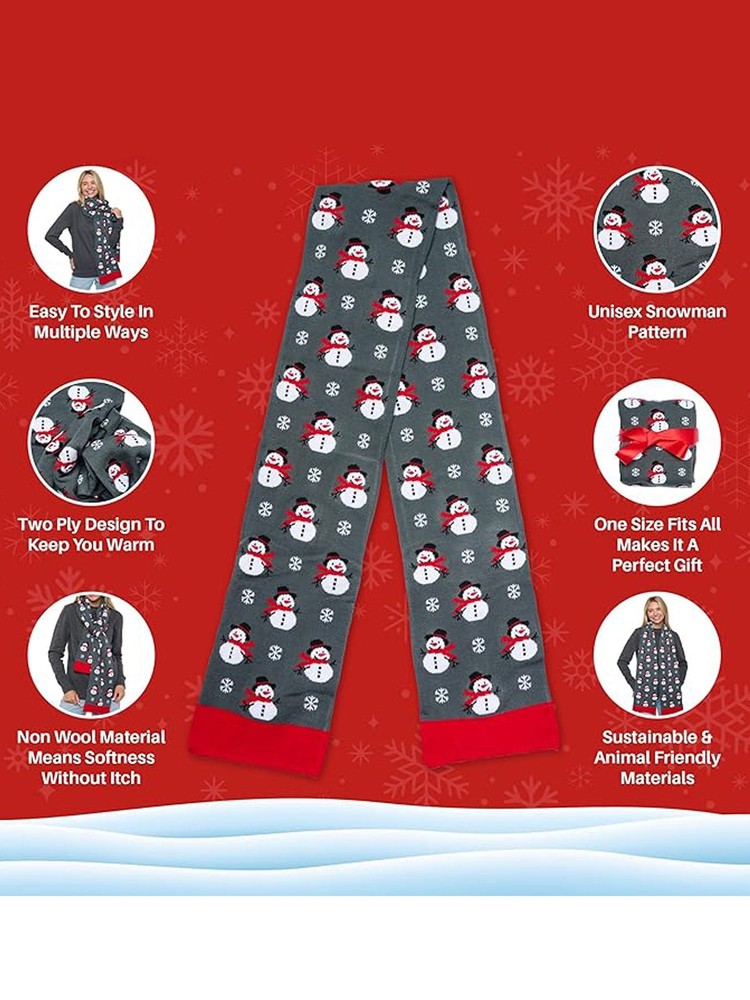 Cozy Fair Isle Snowman Scarf for Men and Women - Double-Sided 70" Knit