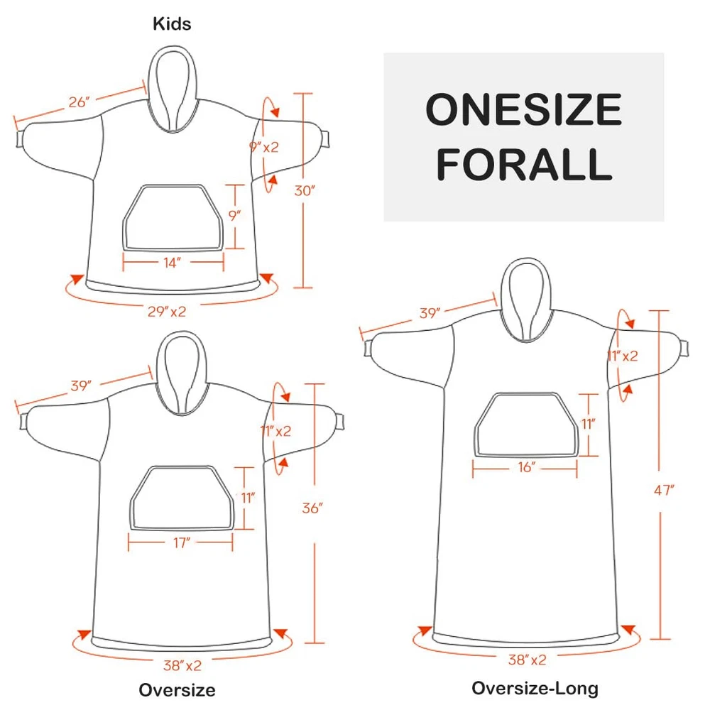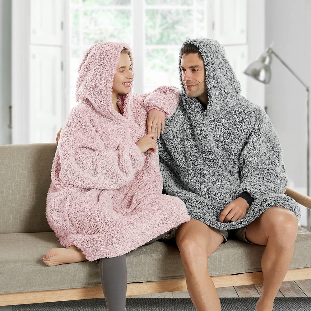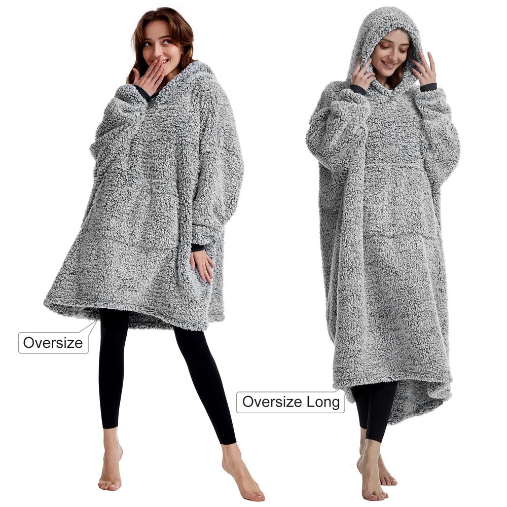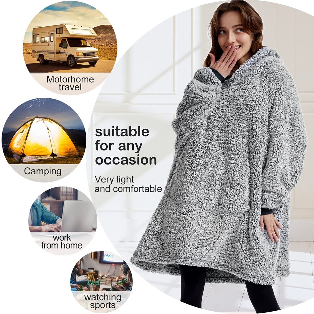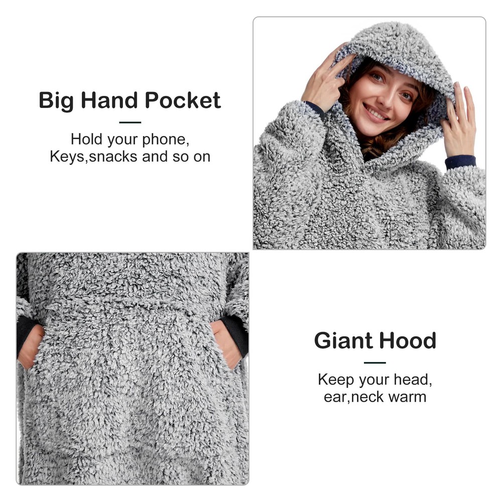 Cozy Warmth and Comfort - Wrap yourself in the soft and lightweight sherpa fleece of this oversized wearable blanket, complete with a large hat, elastic cuffs, and spacious pockets. Whether you're lounging at home or out and about, this snuggle hoodie will keep you warm and comfortable all winter long. Stylish Relaxed Fit - Our various popular colors are designed with unique backgrounds and soft fabrics that add a touch of style to your wardrobe while providing a loose, relaxed fit for unprecedented comfort and fashion. Perfect for any body type or occasion, this hoodie makes a great addition to any outfit. One Size Fits All - Our oversize design is suitable for adults, children, and any body size. Whether you're at home, traveling, attending events, or just need a cozy cover blanket for your family/children, this hoodie is lightweight, comfortable, and perfect for any occasion. Perfect Gift Idea - Looking for a unique gift for Christmas, Valentine's Day, Mother's Day, or any other holiday? Everyone needs a blanket hoodie, and this one is ideal for lounging, snuggling up, watching movies, or eating breakfast. Give your friends, girlfriend, daughter, or wife the ultimate gift of comfort and coziness. Easy Maintenance & Satisfaction Guarantee - Machine washable (below 30℃) and dryable under low heat settings for easy maintenance. Order now and experience the ultimate in warmth, comfort, and style.