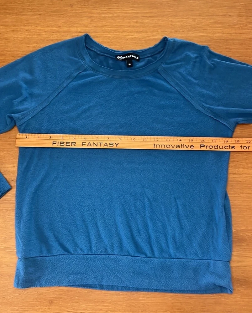 This Wantable knit top is the perfect addition to your wardrobe. With a solid pattern and cropped style, it's a versatile piece that can be dressed up or down for any occasion. The top features raglan sleeves, raw edge seams, and a round neckline with a pullover closure. It's made of a soft and comfortable brushed fabric, a blend of polyester, spandex, and rayon, ensuring a comfortable fit all day long. The blue color is perfect for any season and can be paired with jeans, leggings, or skirts. It's machine washable for easy care, and the stretchy fabric makes it easy to wear in any size. Whether you're traveling or just running errands, this top is a must-have. See pics for details. Excellent preowned condition! Reasonable offers welcome!