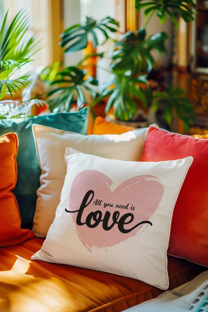Cozy Valentine's Day Square Pillow - All You Need Is Love Design, Perfect Gift
