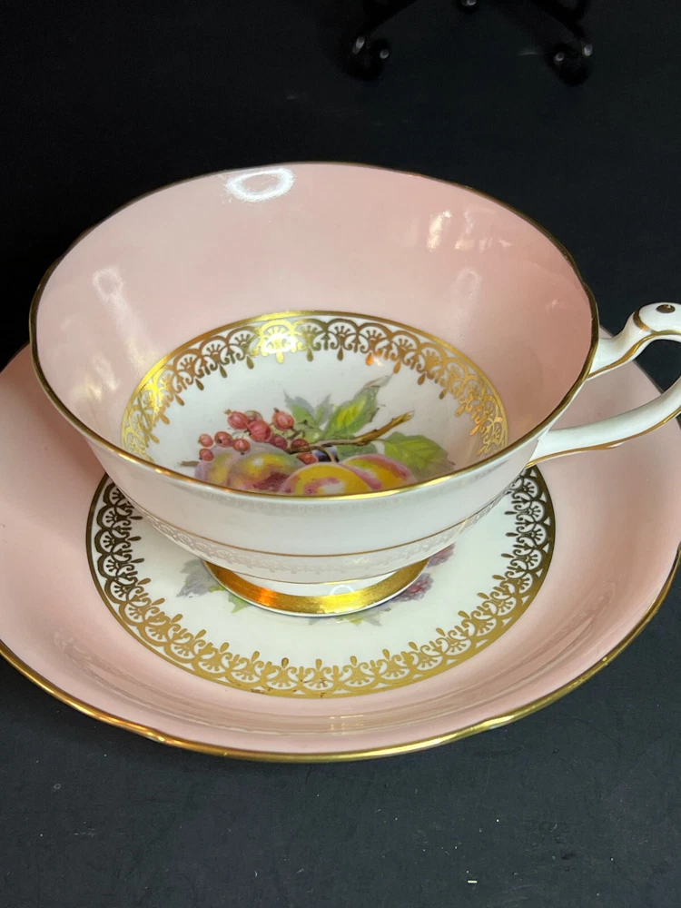 Crack! Vintage Royal Grafton Bone China Pink Gold Rim Fruit Tea Cup & Saucer. There is a hair line crack in the cup that I did not see until photos . The set is being sold as is . Please check last photos. Thanks for looking !