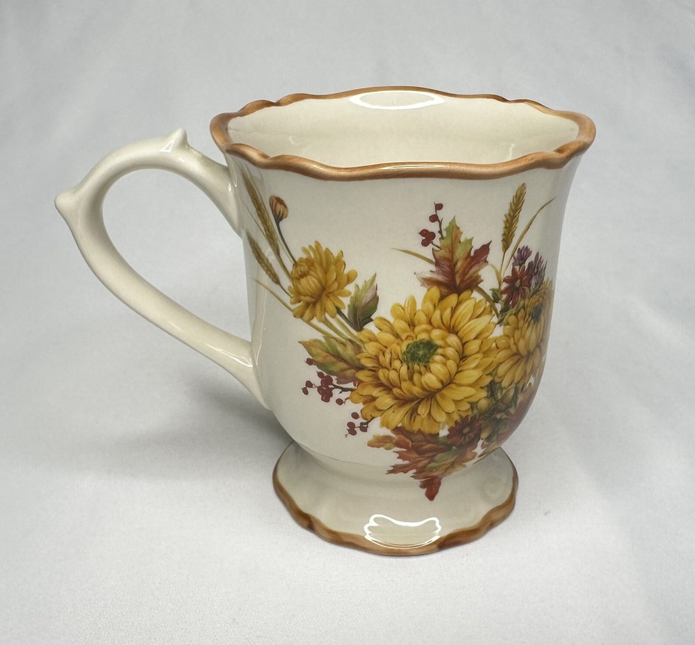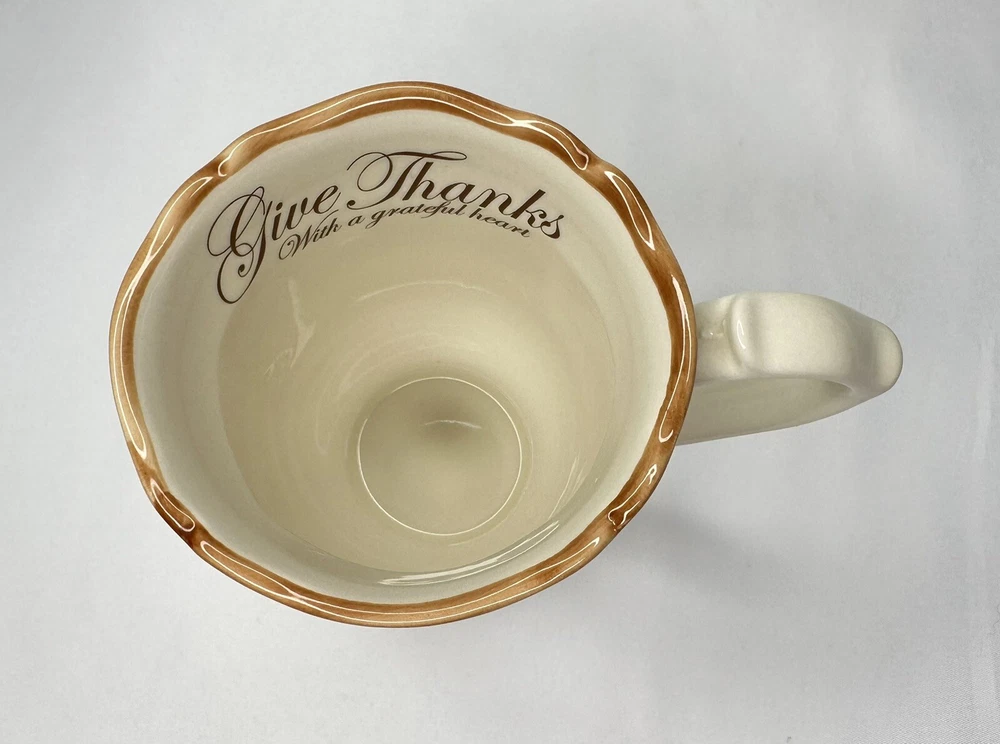 Cracker Barrel Family Blessings Give Thanks with a Grateful Heart Footed Ceramic Mug. Approximately 4 5/8” tall and 4” wide across top rim. Mug is in excellent pre-owned condition.