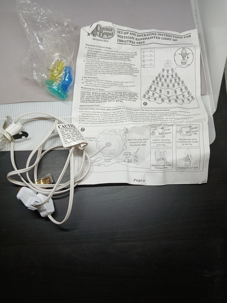 Does not include the box. Includes some spare bulbs and instructions. The bulbs will come detached. They are screw in bulbs - so to prevent breaking during shipment they will arrive unscrewed