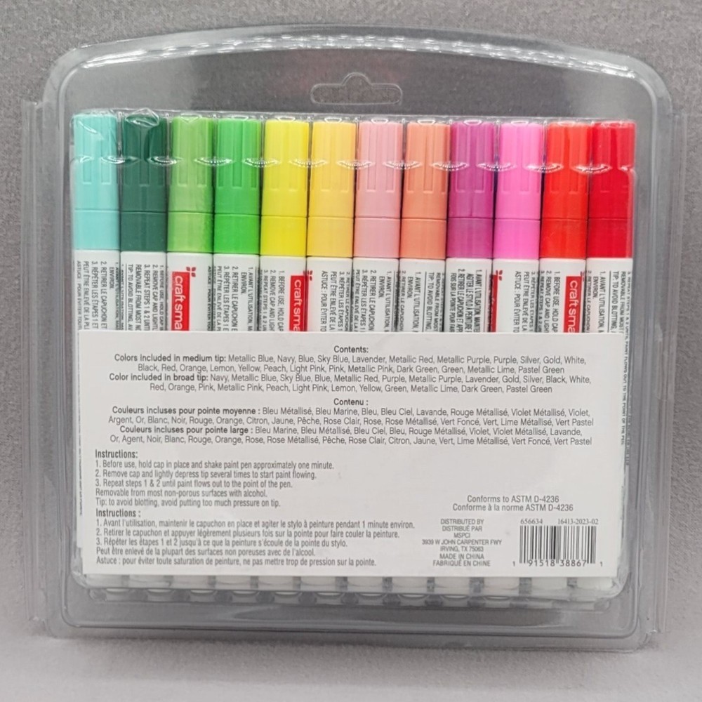 Unleash your creativity with this expansive 48-piece set of Craft Smart paint pens, offering both medium and broad lines for versatile artistic expression. Experience the smooth, vibrant flow of oil-based ink that dries water-resistant, making your creations durable and stunning. Ideal for adding a pop of color and detail to wood, plastic, metal, and glass surfaces, these non-toxic pens are perfect for crafting personalized gifts, decorating home decor items, or adding unique touches to DIY projects. Elevate your next art session, craft party, or home improvement endeavor with this comprehensive collection. Type: Paint Marker Pen Finish: Metallic Unit Type: Unit Keywords: oil paint pens, art markers, craft supplies, DIY projects, decorative painting, water resistant, non toxic, assorted colors, hobby craft, artist tools, permanent ink, creative expression