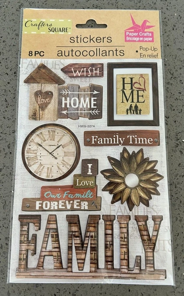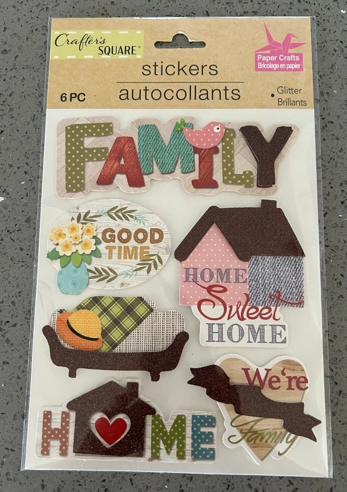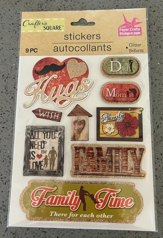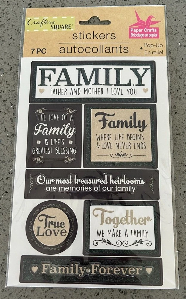 New in sealed package - Crafter's Square "Family" stickers. Choice of Home Sweet Home, Family Forever, Family, Family Time, Grandpa - Family Man.