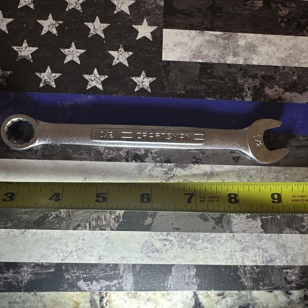The Craftsman Tools 1/2" 12-Point SAE Combination Wrench 44695 is a high-quality hand tool made in the USA. This single item features a 12-point drive type, making it perfect for automotive applications. With a sleek design and durable construction, this wrench is a reliable tool for any mechanic or DIY enthusiast. Additionally, this product comes with a California Prop 65 Warning, ensuring users are aware of potential health risks associated with the tool.