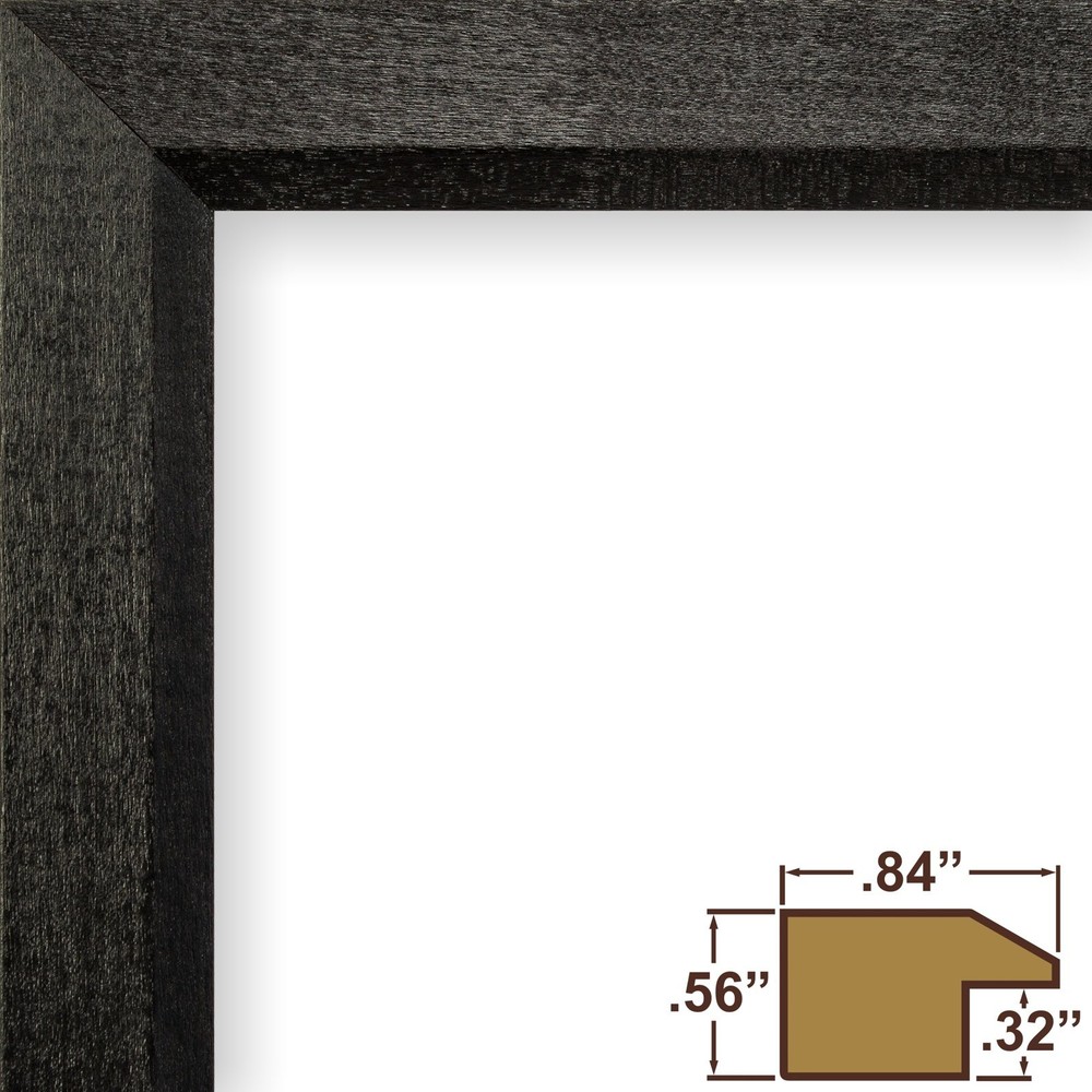 Traditional style; black; wood grain finish Frame includes: glass, rigid black backing and pre-attached stamped hanging hardware Frame holds a 10 inch by 12 inch photo/print (viewable area reduced by .25" on each side due to frame lip) Frame moulding is .825 inch wide; solid poplar wood Made in the U.S.A.