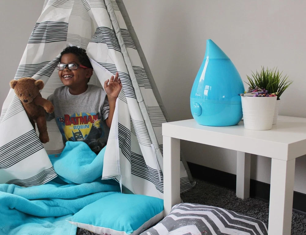 LARGE ROOM HUMIDIFIER: The Drop Ultrasonic Humidifier features an easy-to-clean, detachable tank that holds one gallon of water to humidify bedroom, nursery, or indoor spaces up to 500 square feet for 24 hours ADJUSTABLE HUMIDITY: This air humidifier features an optional filter slot and variable controls to set optimal humidity levels when used as a plant humidifier, baby humidifier, bedroom humidifier, or as small humidifier for the office SOOTHE SEASONAL ALLERGIES: Add humidity to your dry living spaces and pair with relaxing steam inhalers that help fight cold and flu symptoms all year round and make wellness a priority AUTOMATIC SHUT-OFF: Each small humidifier has an automatic shut-off safety feature DROP SHAPE COLLECTION: We offer a collection of air humidifiers, humidifiers for women, men, and kids, and evaporative humidifiers in a range of colors to find the right large or small humidifier for your home, nursery, office, or bedroom