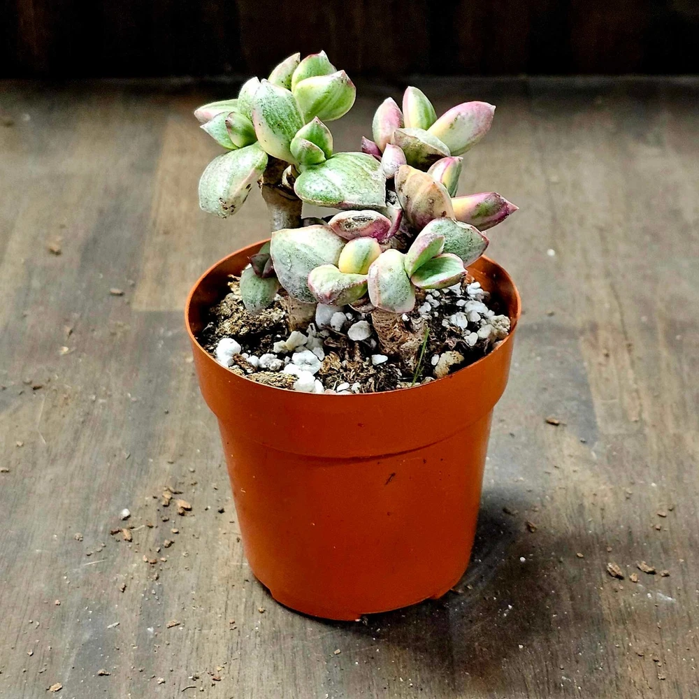 Crassula Obliqua ‘Tricolor' in a 2.5" Pot - AS-IS - CLEARANCE SALE! 2299 Crassula obliqua ‘Tricolor’ is a captivating succulent known for its glossy green leaves adorned with creamy white and pink edges, creating a vibrant, multicolored display. Its compact, bushy growth habit makes it an excellent choice for container gardening or as a striking houseplant. Showcases green leaves with creamy white variegation and pink margins, creating a visually striking appearance. This succulent thrives in bright, indirect light but can adapt to low-light conditions. Water only when the soil is completely dry and reduce watering in winter when growth slows. Please Note: Our selection offers a wide range of shapes, sizes, colors, and textures to match your personal style and preferences. But don't delay - order yours today before they're all gone! The clearance plants remain under our care until sold and will continue to grow, increasing in value. Consequently, their prices may also rise over time. Rest assured, the pictures provided are of the actual plants. Returns: If you need to return an item, we kindly ask that you reach out to us first. Were committed to resolving any issues you might face. In the event that your purchase is defective or damaged, please notify us immediately. For all other returns, items must be in unused condition, with original packaging intact and in a resalable state. These returns must be made within 30 days of receipt. The purchase price will be refunded using the same method as the original payment. Shop with confidence and thank you for choosing us for your shopping needs! We appreciate your business.