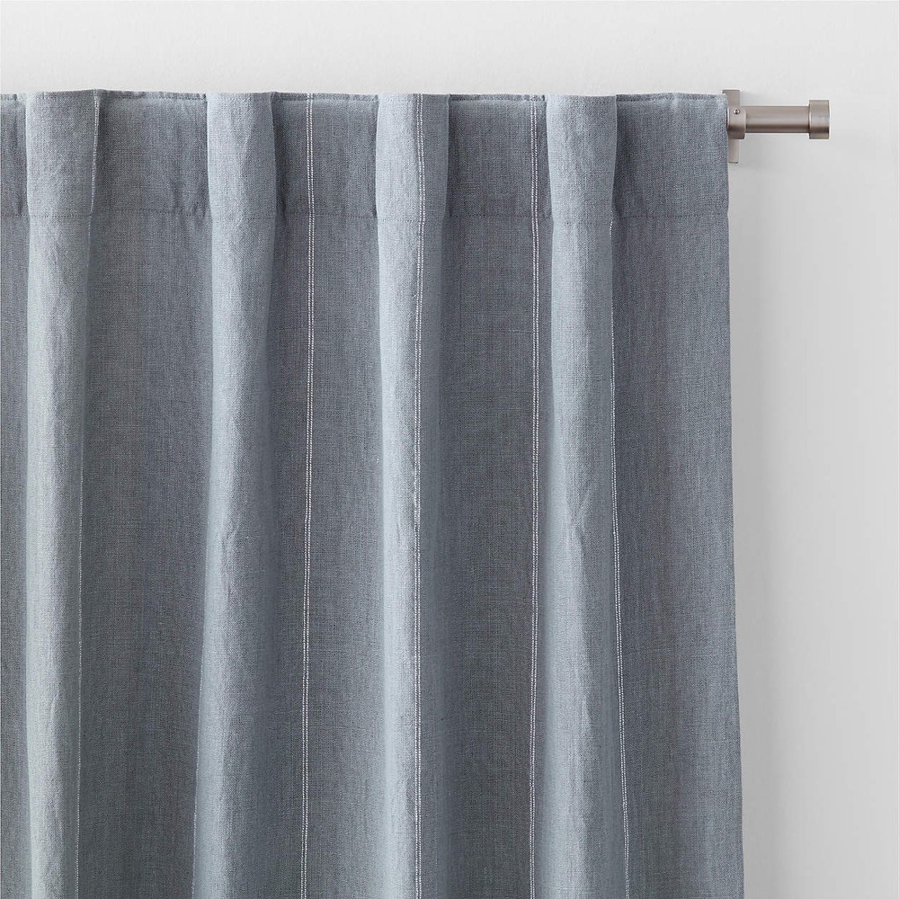 What You Need to Know Brand: Crate & Barrel Item: Mist Blue & Crisp White Linen Blackout Window Curtain Panel Size: 52" W x 108" L – Extra Long Material: 100% European Flax™-certified linen with 100% polyester blackout liner Color: Mist Blue with Crisp White double pinstripes Features: Blackout, Light-Filtering, Thermal Hanging Options: Rod pocket, back tabs or curtain clips (not included) Condition: Brand New with Tags Home: Smoke-free household Features + Benefits: Blackout lining blocks light + adds privacy Elegant drape with breezy linen texture and vertical stripe detail Made using AZO-free dyes and phthalate-free fabrics Dry clean only Sold as a single panel – multiples available Shipping + Returns Ships next business day and packaged with care 30-day returns accepted (buyer pays return shipping) Tags: linen curtain, blackout curtain, blue curtain panel, pinstripe curtains, window panel, European flax, farmhouse style, modern drapes, 52x108 curtain, mist blue drape, light-blocking curtain, rod pocket curtain, pleated linen curtain, natural fiber curtain, soft blue curtain
