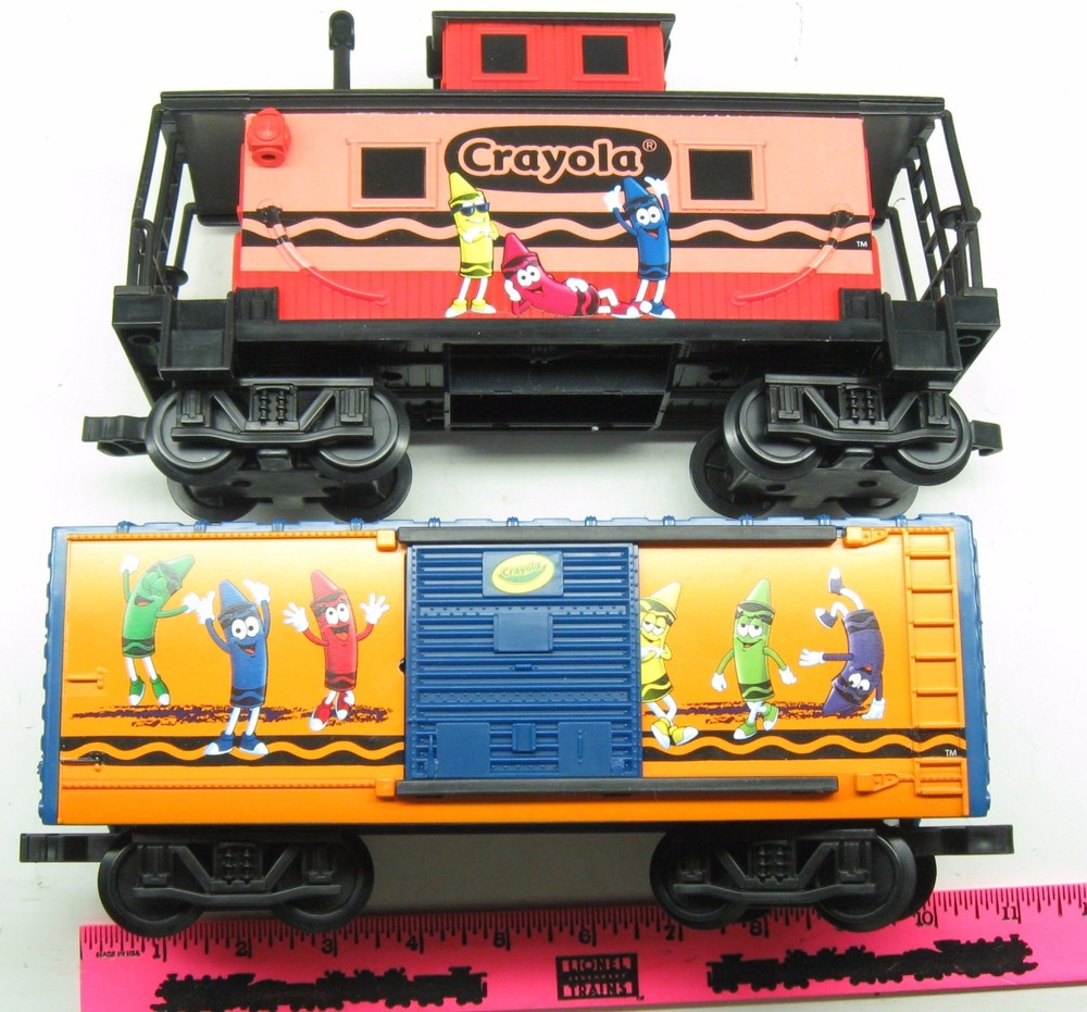 Lionel New no box Crayola add-on G-Gauge train car boxcar and caboose Fixed knuckle couplers 11-569