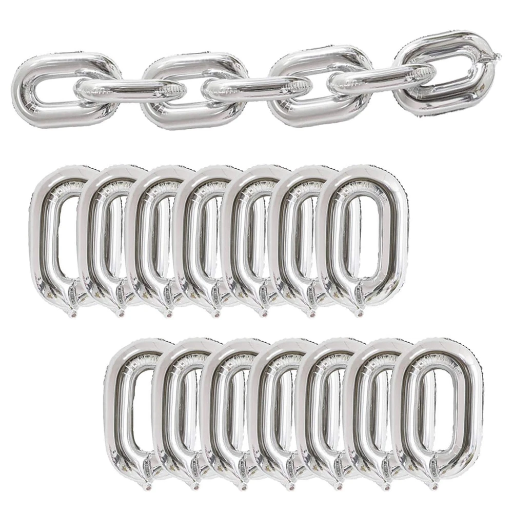Creaides 12pcs Chain Balloons 32" Silver Links Mylar Foil Balloons for Wedding Birthday 80s 90s Hip Hop Themed Party Decorations Let these 32 inch chain silver balloons make a wonderful backdrop. Fantastic for all kinds of parties and can be used as photo props. They can light up happy atmosphere of party and take pictures with it. You will add more fun to the party. Package Including 12pcs x 32 Inch Chain Silver Balloons DESCRIPTION: Material: Aluminum foil; Color: Silver; Size Approx.: 32 inch. Make it as a great centerpiece or a wonderful photo prop for your party decorations. FEATURE: 32 Inch silver chain design balloons, pack of 12 pieces, made of high quality foil, provide your party a perfect display. USAGE: These balloons must first be connected to each other before inflating, in order to form a chain balloon; If you fill them first, you can't string it into a chain. Pinch the inflation inlet flat after inflation being completed. The air outlet will be automatically sealed by its matched self adhesive glue of the balloons inlets. PARTY DECORATION: These balloons can be inflated with both, helium or air. They are perfect for 80s 90s party, hip hop party, birthday themed party, wedding, celebration, rock and roll party, company opening ceremony, photo prop and so on. APPLICATION: You can use the balloons to decorate house, school, restaurant, supermarket and so on. It's a very nice choice of party decorations and will add happy atmosphere to any event you may have. Shipping from the USA All of our products are shipped from the USA, ensuring quick delivery to your destination. Payment We offer the following payment methods: PayPal, credit card, bank transfer, and eBay's secure payment system. Free Shipping & Free Returns Shipping within the USA is FREE. Additionally, any return is absolutely free for you. Risk-Free Purchase You have the option to return an item within 30 days without any justification. We cover the return shipping costs! Fast Shipping We ship immediately upon receipt of payment. Generally, the package is delivered within 2-3 days in the USA. If it takes longer, we will contact you. Quality and Costs Made in Europe, USA, China No customs fees or additional charges Total satisfaction guarantee Invoice with declared VAT available upon request in .pdf format Feedback Your feedback is very important to us. After you pay for your purchase, you will automatically receive positive feedback from us.