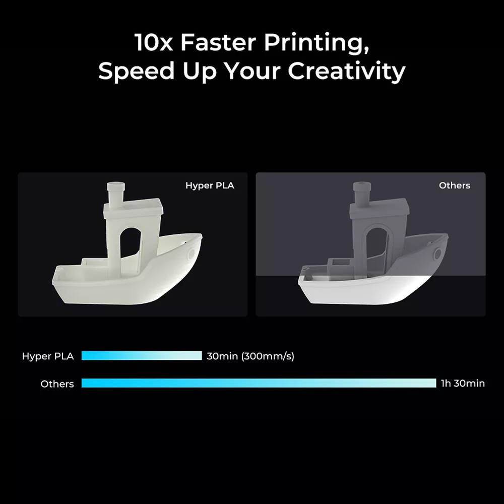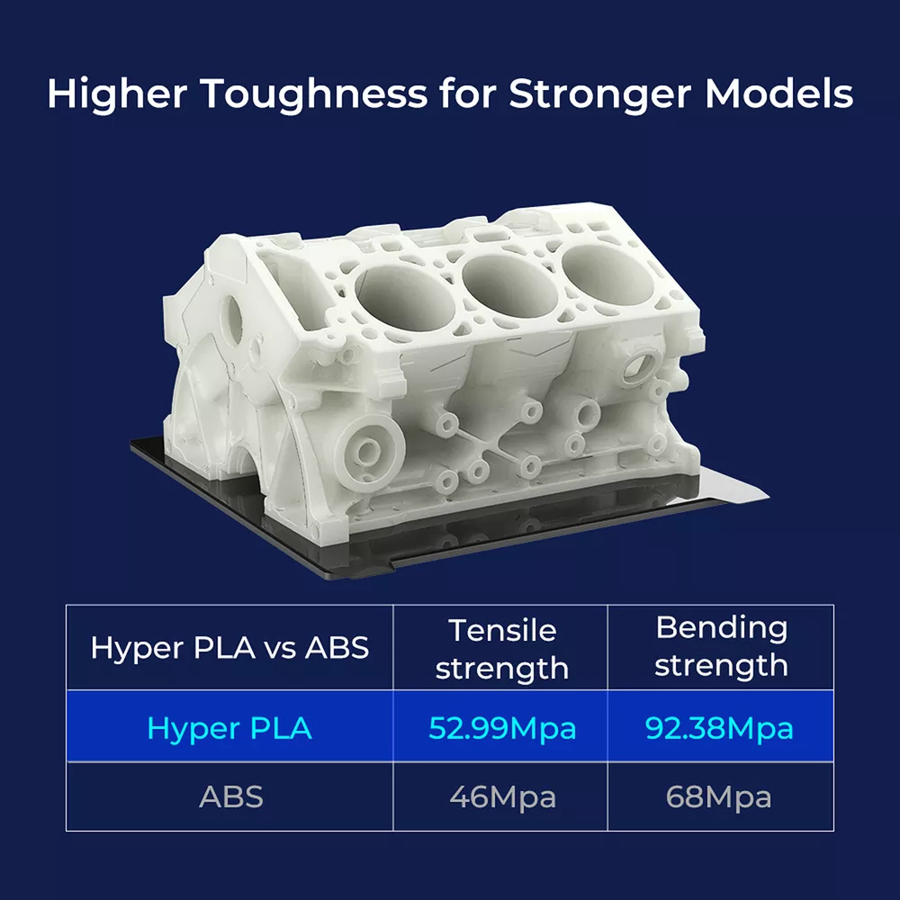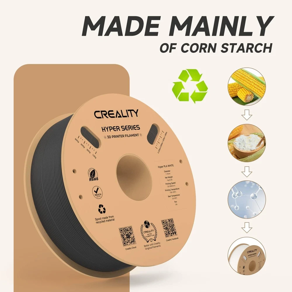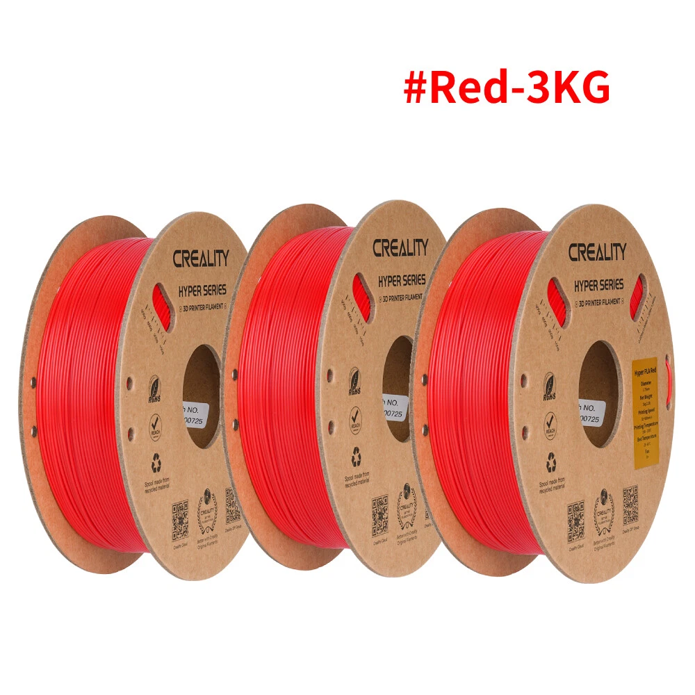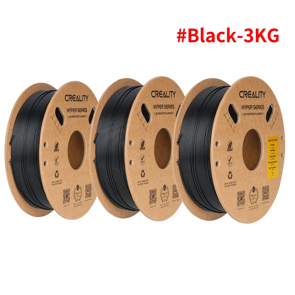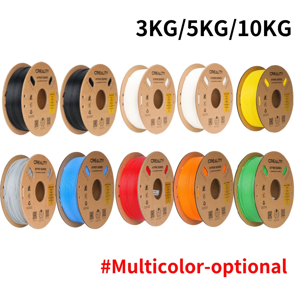 Title Resin Other K1 Series DIY Printer Laser Engraver 3D Printer Accessories 3D Printer Filament Lcd Printer 3D Scanner Creality Hyper PLA 3D Printing Filament 1.75mm 3KG/5KG/10KG 30-600mm/s Speed Product Description Product Name: Hyper Series PLA Wire Diameter:1.75±0.03mm Net Weight:1Kg/2.2lb Cross Weight:1.29Kg/2.8lb Package Size:210*210*70mm Density:1.25g/cm3 Tensile Strength (X-Y):52.991Mpa Tensile Modulus(X-Y):1146.064 Elongation at Break:6.304% Bending Strength (X-Y):92.381Mpa Flexural Modulus:(X-Y):2490.178Mpa Charpy Impact Strength(X-Y):8.8344kJ/m2 Printing Temperature:190-230℃ Hot Bed Temperature:250~600 Printing Speed:30-600mm/s Fan:100% Printing Platform: Carbon Silicon, PEI Platform Board, Textured Paper, PVP Solid Glue Product Features HIGH SPEED PLA: Creality 3D printer filament Pro vacuum sealed with desiccants in a transparent bag. STRONGER TOUGHNESS: Toughness enhancement,Stable spool less-tangle, Make printing smoother. SIZE ACCURACY: Filament accuracy is 1.75mm ±0.03 mm, 1 kg (2.2 pounds).strict quality control make a reassuring printing experience. BEGINNER & EXPERT FRIENDLY: Creality 3D Printing Filaments making it easy for novice users to get started with basic settings. Seasoned printers can push their designs to the limit without worrying about purity, tolerance or printing issues. WIDE COMPATIBILITY: Works ferfectly with most 3D printers on the market, Such as Ender 3, Ender 3 S1,Ender 3 pro,Ender 3v2, Ender 5 S1, Ender 5 pro, CR 6, A 8, CR Model PETG PLA Ender PLA Ender PLA+ Hyper PLA HP Ultra PLA Silk Matte PLA Available Colors 8 Colors Optional 29 Colors Optional 10 Colors Optional 6 Colors Optional 5 Colors Optional 7 Colors Optional 6 Colors Optional 6 Colors Optional Available Materials PETG, ABS, TPU PLA, Silk, Wood, Carbon, MATTE PLA, PLA+ PLA, PLA+ PLA, ABS PLA, TPU, ABS, ASA PLA Silk PLA Matte Filament diameter 1.75mm±0.02mm 1.75mm±0.02mm 1.75mm±0.02mm 1.75mm±0.02mm 1.75mm±0.02mm 1.75mm±0.02mm 1.75mm±0.02mm 1.75mm±0.02mm Printing temperature 230-250℃ 190-230℃ 190-230℃ 190-230℃ 190-230℃ 190-230℃ 190-230℃ 190-230℃ hotbed temperature 60-100℃ no heating -60℃ no heating-60℃ no heating-60℃ 25℃-60℃ no heating-60℃ no heating-60℃ no heating-60℃ Printing Speed 40-80mm/s 40-100mm/s 40-100mm/s 40-100mm/s 30-600mm/s 40-100mm/s 40-100mm/s 30-600mm/s Tensile Strength 48-51Mpa 39MPa 34MPa 34MPa 52.99MPa 40-50MPa 35-40MPa 45-50MPa Bending Strenght 76-86Mpa 71MPa 34MPa 77MPa 92.38MPa 70-80MPa 55-59MPa 35-40MPa Application Scenarios Lampshades, accessories, model Toys, artwork, models, tools Toy,artwork,daily tool,model Animation figures, toys Anime Figures, Daily Tools Anime Figures,End-use Parts Anime Figures, Daily Tools Anime Figures, Daily Tools Feature 1 Non-toxic, Good Toughness Smooth, Low shrinkage, No warp without Warping, Less Tangle Without Breakage 600mm/s High-speed Printing BASF's Recommended Without Breakage Without Breakage Feature 2 Stability & Moisture Proof Pretty, Tidy, Orderly Without Clog, Easy to Print High-quality, Easy to Print Strong Tensile Strength Less Bubbles, No Odor Silky Touch ,Delicate ,Delicate Matte texture experience Fashinable colors Easy to remove Payment Delivery Terms of sales About us Contact us Payment We accept payment via Payoneer. Please accomplish payment within 5 business days after you won the item. Delivery All your orders will be shipped within 1-2 business days and updated tracking info. Please make sure your address is full and correct, so that your order will be soon shipped and delivered smoothly. Most orders will adopt standard shipping, which usually needs 3-5 biz days. Any PO BOX addresses need to be confirmed if delivery or not. Terms of sales 1-month-returning for all orders after they are proved defective/damaged/faulty (videos or photos about it are preferred). Address on the package is not the return address, please email us firstly to get the correct return address. About us * Founded in 2014 by four 3D printing enthusiasts, Creality is a top global manufacturer of 3D printers. Our range of products includes DIY and resin 3D printers, 3D scanners, laser engravers, and filaments. Currently we host four brands of 3D printers: Creality as the master brand, and the three sub-brands of Ender, HALOT and Sermoon. Capitalizing on our innovatively leading technologies and products, we also offer consumer and professional printing solutions for makers, designers, schools and enterprises. Contact us Customer Service Hours: 9:00AM - 18:00PM BST (Beijing Standard Time) . You can also contact our official website customer support.