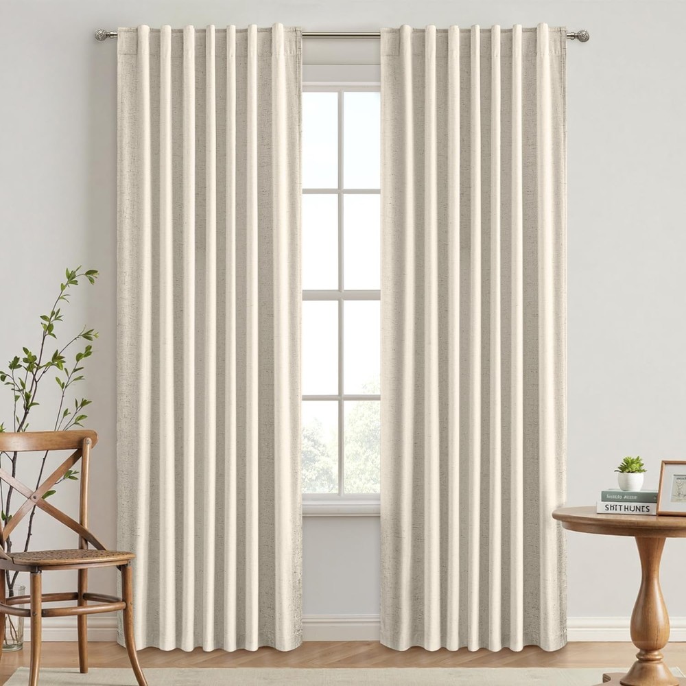 UPC: Does not apply Curtain Form: Curtain Panel Set Material: Polyester, Linen Blend Size: 52"W X 84"L (Pack Of 2) Item Shape: Rectangular Theme: Home Style: Art Deco Unit Count: 2.0 Room Type: Bedroom, Living Room, Dining Room, Office Brand: Does not apply Top Style: Back Tab & Hook Opacity: Blackout gtin13: Does not apply Indoor Outdoor Usage: Indoor Package Dimensions LxWxH: 13.54x9.96x2.83 Inches Curtain Hanging Method: Back Tab Fabric Type: 100% Linen Pattern: Solid Number Of Boxes: 1 Lining Description: Unlined Color: Cream Beige Weight: 4.08 Pounds Type: Does not apply