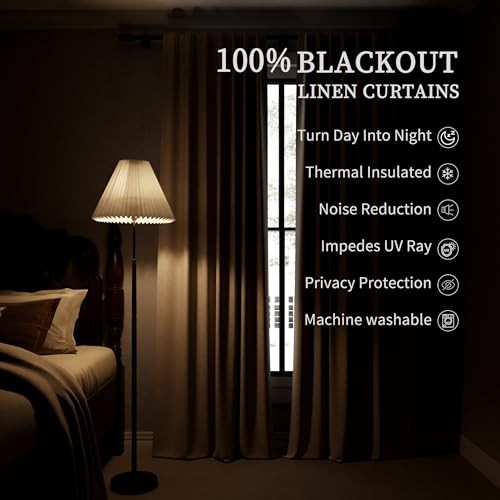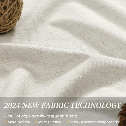 Cream Linen Blackout Curtains 52x84 Inches Set of 2 for Bedroom