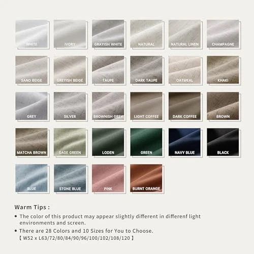 Date First Available: July 17, 2024 Item Weight: 4.73 pounds Included Components: Grommet, 2 Panels MPN: Does Not Apply EAN: Does Not Apply Package Weight: 2.15 Kilograms Color: Natural UPC: Does Not Apply Product Care Instructions: Machine Wash Item Length: 1 Type: Does Not Apply Item Width: 1 Opacity: Blackout Inches Brand: Does Not Apply Manufacturer: Does Not Apply Model Name: 2 Material: Linen Blend Special Feature: Window Treatments, Blackout Country of Origin: China Indoor Outdoor Usage: Indoor Item Height: 1 Lining Description: Unlined Room Type: Office, Bedroom, Living Room, Nursery, Dining Room Number of Items: 2 Style: Modern,Farmhouse,Country,Casual Pattern: Solid Product Dimensions: 84"L x 52"W Customer Reviews: 4.5 out of 5 stars Hanging Method: Back Tab Recommended Uses For Product: Indoor Water Resistance Level: Not Water Resistant Theme: Morden Top Style: Grommet, Back Tab, Rod Pocket, Rod Size: 52"W x 84"L (Pack of 2) gtin13: Does Not Apply Unit Count: 2.0 Count