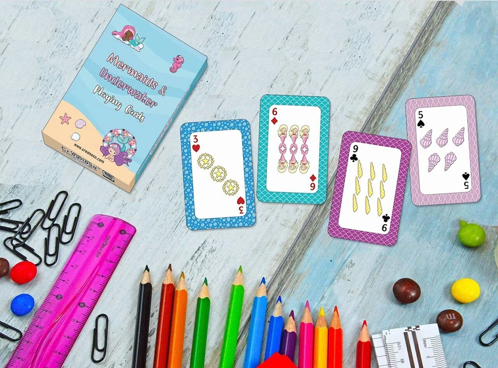 Creanoso Mermaids & Underwater Playing Cards (4-Deck) - Group Activity Game Cards Corporate Gifts for Girls - Women School Token Incentives - Fun Recreational Entertainment Tool for Friends Captivating Playing Cards Collection (4 Decks - 54 Cards Set): This collection includes four decks, offering a total of 216 double-sided, poker-sized cards. Featuring unique designs with colorful and vibrant images, these cards engage and captivate players of all ages. Each card is thoughtfully crafted with visually appealing graphics and vivid hues, designed to stimulate and enhance the enjoyment of card play. Ideal for Group Fun and Recreation: Whether you're at home, in the living room, kitchen, or at the office, these playing cards make an excellent recreational tool for enjoying quality time with family and friends. Our cards bring fun to life with their ease of use, vibrant designs, and lively colors, sparking a passion for card games. Thoughtful Rewards Token and Handing Out Presents: This offers a great way to share fun with family and friends, and make thoughtful presents for any occasion. Whether celebrating during a family celebration, graduation day, corporate anniversary, work promotions, or simply want to share and gift to friends. Share the joy of fun and thoughtful gifting with our playing cards that ignite curiosity and enjoyment among friends and loved ones. Durable and Water-Resistant Construction: Each card, sized at 2.2x3.4 inches with rounded corners, is printed on matte cardstock and coated with a water-resistant finish. This ensures that the vibrant designs remain intact and durable through daily use. Cost-Effective Bulk Options for Leisure Activities: Ideal for home and office activities, group handing out presents, or adding variety to your personal card collections, our bulk packs offer significant low-cost options without compromise. Whether you need a few or a few hundred, our bulk pack options are designed to meet your needs and budget. Captivating Playing Cards Collection (4 Decks - 54 Cards Set): This collection includes four decks, offering a total of 216 double-sided, poker-sized cards. Featuring unique designs with colorful and vibrant images, these cards engage and captivate players of all ages. Each card is thoughtfully crafted with visually appealing graphics and vivid hues, designed to stimulate and enhance the enjoyment of card play. Ideal for Group Fun and Recreation: Whether you're at home, in the living room, kitchen, or at the office, these playing cards make an excellent recreational tool for enjoying quality time with family and friends. Our cards bring fun to life with their ease of use, vibrant designs, and lively colors, sparking a passion for card games. Thoughtful Rewards Token and Handing Out Presents: This offers a great way to share fun with family and friends, and make thoughtful presents for any occasion. Whether celebrating during a family celebration, graduation day, corporate anniversary, work promotions, or simply want to share and gift to friends. Share the joy of fun and thoughtful gifting with our playing cards that ignite curiosity and enjoyment among friends and loved ones. Durable and Water-Resistant Construction: Each card, sized at 2.2x3.4 inches with rounded corners, is printed on matte cardstock and coated with a water-resistant finish. This ensures that the vibrant designs remain intact and durable through daily use. Cost-Effective Bulk Options for Leisure Activities: Ideal for home and office activities, group handing out presents, or adding variety to your personal card collections, our bulk packs offer significant low-cost options without compromise. Whether you need a few or a few hundred, our bulk pack options are designed to meet your needs and budget. Shipping from the USA All of our products are shipped from the USA, ensuring quick delivery to your destination. Payment We offer the following payment methods: PayPal, credit card, bank transfer, and eBay's secure payment system. Free Shipping & Free Returns Shipping within the USA is FREE. Additionally, any return is absolutely free for you. Risk-Free Purchase You have the option to return an item within 30 days without any justification. We cover the return shipping costs! Fast Shipping We ship immediately upon receipt of payment. Generally, the package is delivered within 2-3 days in the USA. If it takes longer, we will contact you. Quality and Costs Made in Europe, USA, China No customs fees or additional charges Total satisfaction guarantee Invoice with declared VAT available upon request in .pdf format Feedback Your feedback is very important to us. After you pay for your purchase, you will automatically receive positive feedback from us.