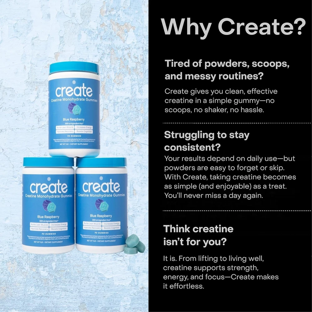 Create Creatine Monohydrate Gummies for Men & Women Boost Focus Strength and ... REVOLUTIONARY FORMULA FOR PEAK PERFORMANCE: Experience the next generation of creatine supplementation with our vegan gummies, powered by 1.5g of premium Creapure Creatine Monohydrate per gummy. Crafted for athletes and wellness seekers alike, these gummies support muscle strength, recovery, and enhanced endurance. ENHANCE FOCUS & PHYSICAL PERFORMANCE: Infused with scientifically proven Creapure for unmatched quality, these gummies help sharpen mental clarity and sustain focus during workouts and daily tasks. Unleash the power of a sharper mind paired with a stronger body. CLEAN, VEGAN, & NON-MELTING DESIGN: Designed with a unique anti-melting formula, our gummies are perfect for on-the-go lifestyles. Vegan, Non-GMO, and Gluten-Free, they cater to all dietary preferences without compromising on quality. CONVENIENT & DELICIOUS: Say goodbye to messy powders and bland supplements. Our refreshing blue raspberry flavor makes every gummy an indulgence. With 1.5g creatine per gummy, enjoy ultimate convenience and performance benefits in every bite. BUILD MUSCLE & BOOST RECOVERY: Maximize your gains with creatine, scientifically proven to promote muscle growth, enhance recovery, and increase endurance. Whether you're lifting, running, or recovering, these gummies elevate every Shipping We offer FREE shipping on all orders! We ship within Three business days of payment, usually sooner. Local pickups and combined shipping options are not provided at this time. Return You can return a product for up to 30 days from the date you purchased it. Any product you return must be in the same condition you received it and in the original packaging. Please keep the receipt. Payment We accept payment by any of the following methods: PayPal Please pay as soon as possible after winning an auction, as that will allow us to post your item to you sooner! Feedback Customer satisfaction is very important to us. If you have any problem with your order, please contact us and we will do our best to make you satisfied. Contact Us If you have any queries, please contact us via ebay. We usually respond within 24 hours on weekdays. Please visit our eBay store to check out other items for sale! Thank you for shopping at our store.