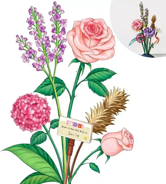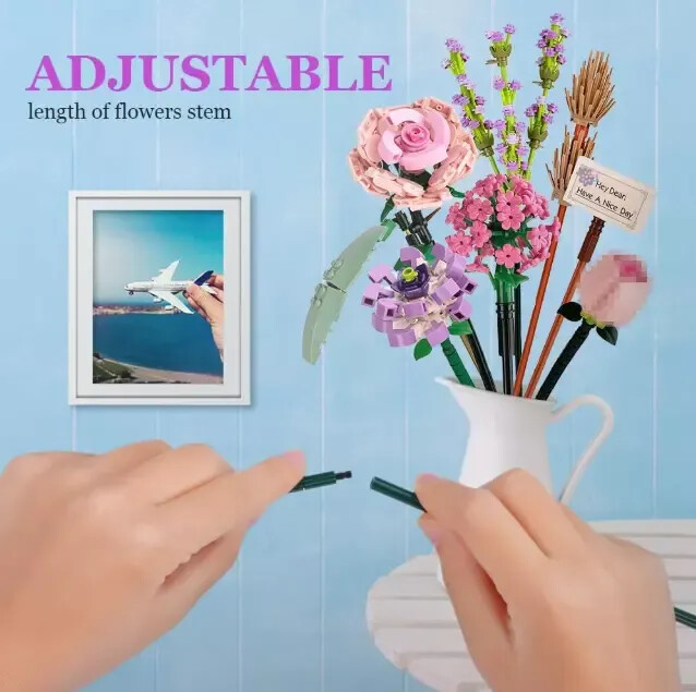 Set Flowers Bouquet Building Set, Creative Artificial Wildflowers Botanical US Warehouse - FREE & FAST Shipping in USA Product Description: 【Pink Roses Bouquet Building Blocks Set】 : Roses eight flower set, lavender, rose, hydrangea, camellia and grass + making manual. Follow our painting manual and you will have a perfectly realistic bouquet. 【High Quality Safe Building Blocks】 : The bouquet building blocks are made of ABS plastic, with precision cutting technology and advanced color treatment, no fading, smooth edges, and will not hurt your hands. The position of the building blocks is accurate, can be disassembled and assembled repeatedly, and the playability is super strong. 【Unique Diy Design】 : Contains 547PCS creative building blocks, each bouquet of flowers has unique characteristics and meanings. You can use your creativity, freely match our other bouquets, create your flower arrangement art, swingable petals and leaves, adjustable stem length, design a meaningful flower for yourself. 【Fun Project】: The flower bouquet building kit can help you release stress and focus, cultivate children's patience/concentration/thinking/hands-on ability in an easy and fun way, learn to decompress, and enjoy assembling toy games. 【Exquisite Gift】: The bouquet set is an ideal gift for family, friends, partner on Valentine's Day, Birthday, Mother's Day, April Fool's Day, Thanksgiving Day and Christmas. Beautiful preserved flower bouquets can express your love and surprise to them. And it can also be used as a home decoration. Feedback: 1.Any question for your order, please contact us in time, we will reply to you within 24-48 hours and give you a satisfactory answer. 2.If you are satisfied with our products and services, hope to take up a little precious time to leave feedback reviews for our products.Thanks! 3.Your satisfaction is our effort. Welcome to order again! Have a great day! Our Policy: 100% Satisfaction Guarantee 30 Days Return and Refund Guarantee Free and Fast Shipping in USA, US Warehouse 15% of restocking fee will be charged for return it