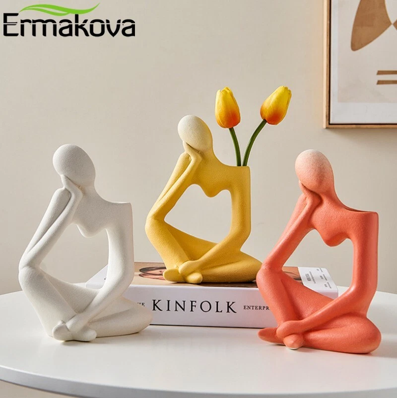 The Ermakova Ceramic Thinker Vase is a stunning blend of artistry and functionality, perfect for elevating your home decor. Designed with a minimalist Nordic aesthetic, this vase features a sculptural "Thinker Girl" ornament that exudes elegance and modernity. Made from high-quality ceramic, the vase boasts a smooth, polished surface with intricate detailing that captures the contemplative pose of the figure. Its versatile design makes it ideal as a standalone decorative piece or as a functional vase for fresh or dried flowers, effortlessly enhancing any living room, table, or shelf with its chic presence. This decorative vase serves as a timeless centerpiece, blending seamlessly into various interior styles, from contemporary to classic. Its neutral tones complement a wide range of color palettes, while the artistic design invites conversation and admiration. Perfect for adding a touch of sophistication to your home or as a thoughtful gift for art enthusiasts, the Ermakova Ceramic Thinker Vase is more than just decor—it’s a statement piece that reflects creativity and refined taste. Feel free to send me any questions if you have them, I’d be happy to help!