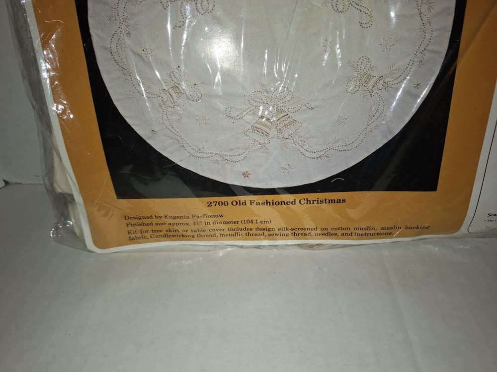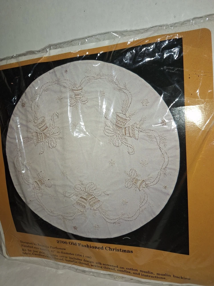 MPN:2700Theme:Holiday/Christmasgtin13:Does not applyModel:Old Fashion ChristmasVintage:YesUPC:Does not applyNeedlecraft:candle WickingBrand:The Creative CircleKeywords:Christmas bellsFormat:Tree Skirt or table coverCountry/Region of Manufacture:United StatesSize:41” diameter