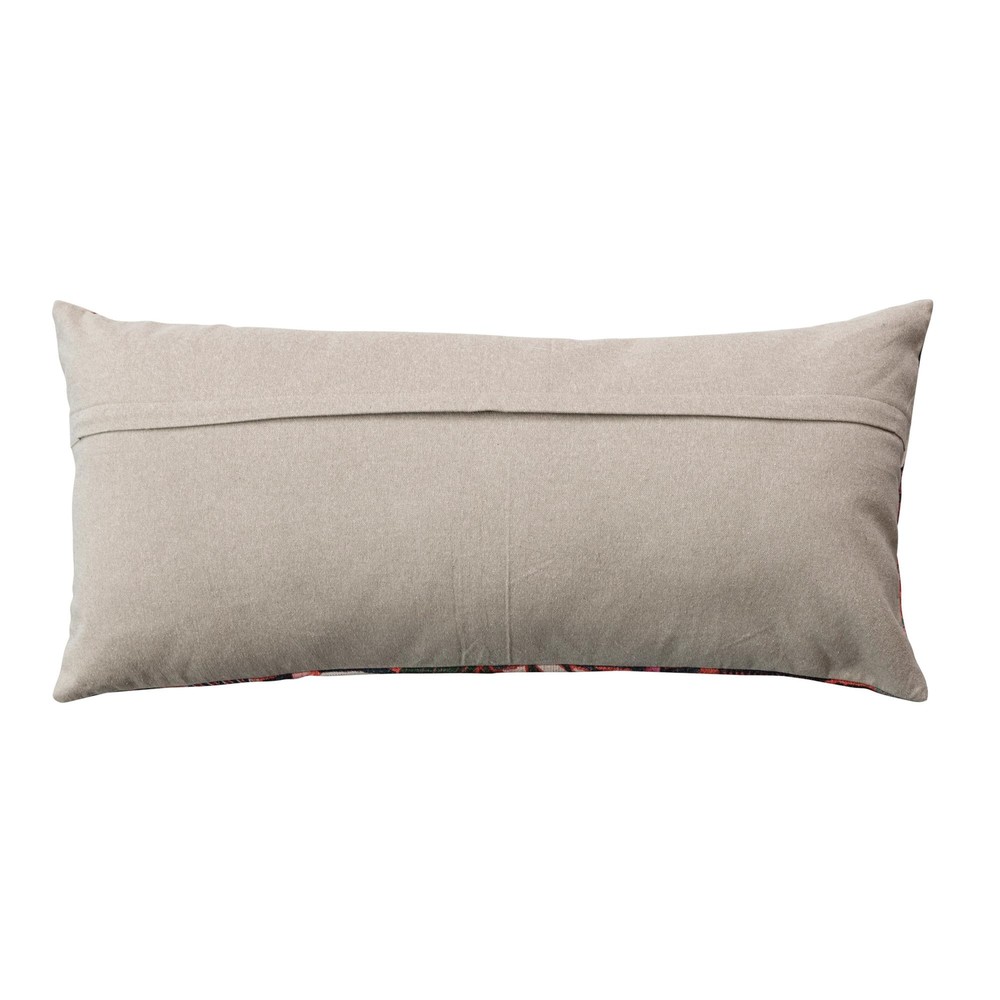 Creative Co-Op 36-inch Cotton Slub Embroidered Lumbar Pillow in Floral Chambray