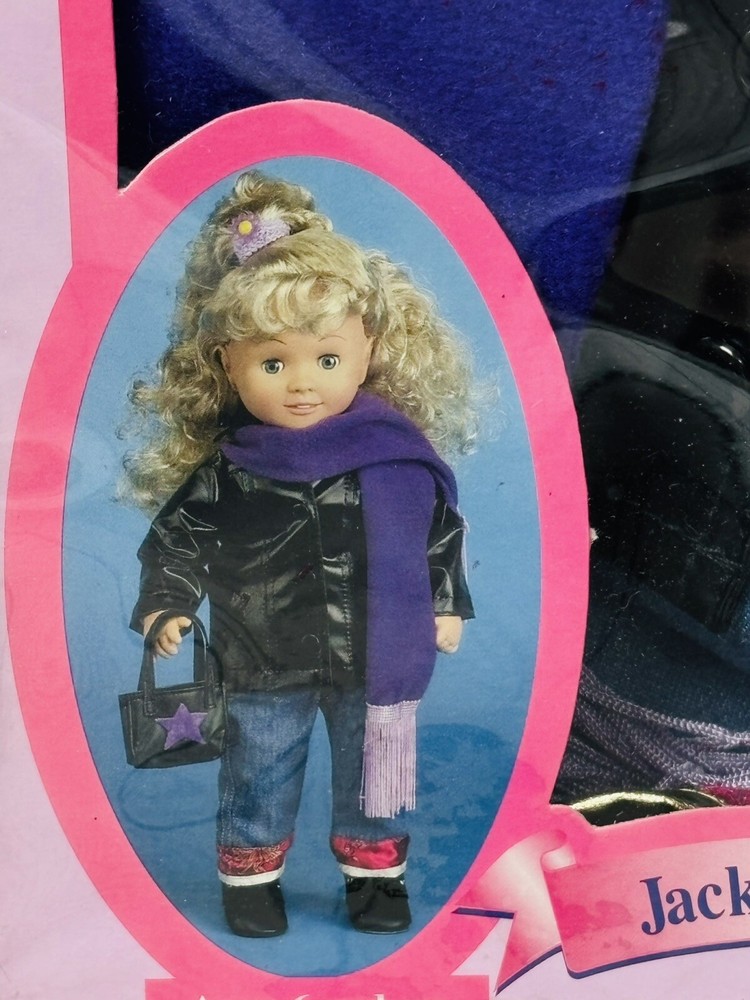 Dress up your American Girl doll with this stunning outfit from Creative Designs. The Girl Dreams collection features a chic black leather jacket, pants, top, scarf, and bag, all in vibrant multicolors that will surely catch your doll's attention. This original outfit is compatible with 18-inch dolls and is perfect for any season. Upgrade your doll's wardrobe with this stylish outfit and let your creativity soar. With its high-quality cloth material, this outfit will surely last for hours of playtime. Add this Creative Designs Girl Dreams outfit to your collection today and make your American Girl doll dreams come true.