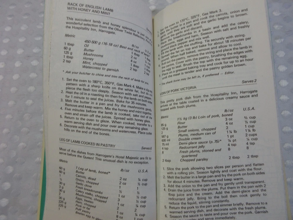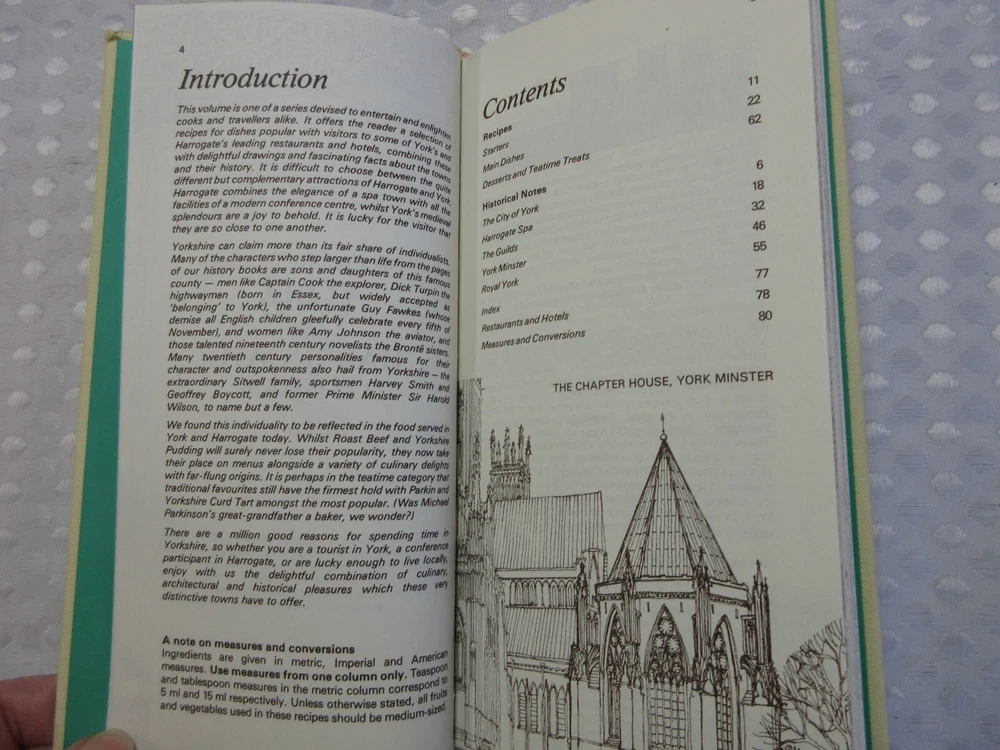 This slender vintage volume is 80 pages long. It combines recipes and histories of the York and Harrogate Restaurants in England. Measures approx 8 3/4"X4 1/4"X1/2". Minor wear to the boards, an inscription in the inside cover, otherwise in very nice condition. No food splatter or other stains. Please be aware there are no returns so measure carefully! All measurements are approximate and taken with utmost attention to accuracy Smoke-free home Seller has pets Please study photographs carefully as they are part of the description and items are sold “as is” Please do not hesitate to contact me with any questions you may have or if you need additional photos Actual color of item may vary due to camera flash, computer monitor, color variations I do not accept layaway so please do not ask me to "hold" something for you beyond eBay's policy. Thank you for your understanding.