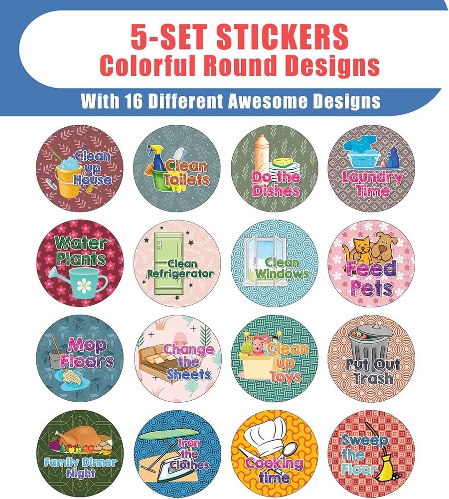 16 UNIQUE DESIGNS INSPIRING STICKERS FOR YOUR DIY PERSONALIZED DECORATIONS - These colorful and uniquely inspiring round shaped stickers are the best tool for DIY decoration and personalization of your belongings. GREAT STOCKING STUFFERS, SCHOOL CORPORATE TEACHING SUPPLEMENTARY MATERIALS, AND INCENTIVE GIFTS - Great rewards giveaways for Boys Girls, Kids, Teens, Children, Adults, Professionals. A perfect design to give during guidance sessions, classroom activities, school giveaways, birthdays, anniversaries, family day, and any other special occasions. MADE WITH DURABLE AND WATERPROOF MATERIALS - There is a lamination or coating to make the stickers high water resistant, and WILL NOT fade from the water. The stickers can stick it anywhere you like, and it sticks there and lasts a long time. A COLORFUL AND DECOR STICKER DECAL - Each sheet with 16 individual round stickers. There are 5 Sheets, with a total of 80 pieces of stickers. STICKER SIZE: 1.5 INCHES IN DIAMETER Creative Reminder Sticker -House Chores (5 Sets X 16 Designs) COLORFUL AND COLLECTION OF TEXT STICKERS • Well designed. • Very encouraging. • Self-adhesive. Creative Reminder Sticker -House Chores (5 Sets X 16 Designs) are super fun to collect; you can't have just one! That's why you will find a selection of stickers right here. Each package comes with different stickers in a variety of designs. Stick them here, stick them there, stick them everywhere! Everyone will love these self-adhesive stickers. These colorful stickers are perfect for any adults and these come with very inspiring messages and bright pictures. A fun, inexpensive way to add a decorative, notes, and stationery. Delight yourself with uplifting messages designs that are very encouraging. Creative Reminder Sticker -House Chores (5 Sets X 16 Designs) perfect for giveaways, behavior incentives, prizes! These stickers are acid-free, nontoxic, and safe for use on photos. This product comes with a 60 days money back guarantee. You can return them to us for a full refund.