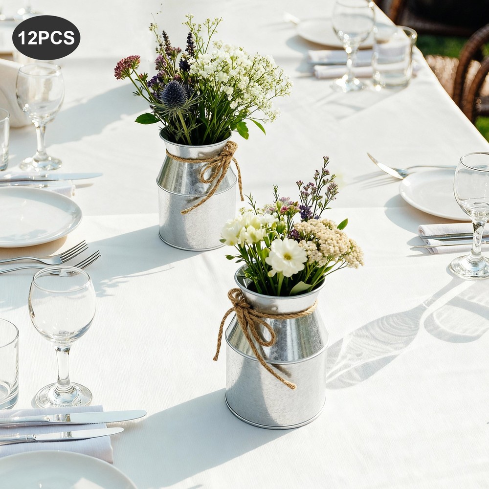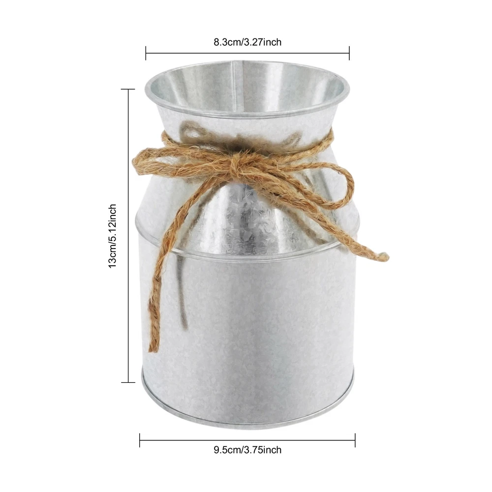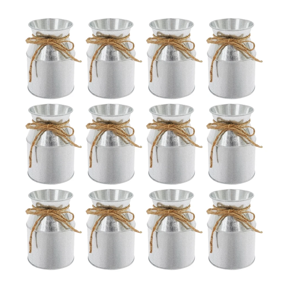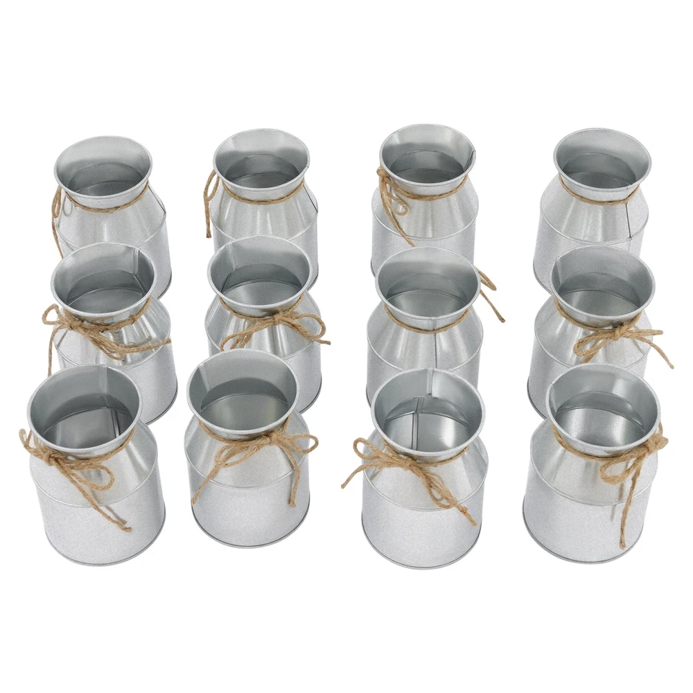 Creative Milk Can Shape Flower Vase 12 Pcs Flowers Vases With Hemp Rope Bow Description This flower vase is a charming addition to your living space. Its compact size allows it to instantly add natural beauty and elegant charm to your desk, dining table, shelf, or other small corner in need of beautification. It brings a warm and inviting atmosphere to your home. This charming tabletop vase is ideal accent in your living space—its compact, space-saving size lets it infuse natural beauty and elegant charm into places, whether it’s your desk, dining table, shelf, or even a tiny nook that needs a touch of sprucing up. Use it as a standalone decor piece to add subtle elegance; it wraps your home in a warm, welcoming atmosphere that feels both cozy and refined. Key Features Premium Material: The item is made of galvanized iron with a baked paint treatment, making it sturdy, water-repellent , and rust-inhibiting . So it can remain practical and beautiful without frequent replacement. Longevity You Can Trust: Crafted from sturdy galvanized iron, with a baked paint process, the robust structure stands up to deformation, ensuring your decor remains beautiful over time. Stylish Decor: Each vase is designed with a hemp rope bow for added rustic appeal, infusing your home with traditional country charm. Expression of Exceptional Taste: It features a sleek body wrapped in a hemp rope bow, adding a natural, vintage charm to the piece, infusing the otherwise minimalist form with a touch of rustic character. Reasonable Size: The base( 3.75 inches) and height( 5.12 inches) make this product an excellent decoration for placing on the table. The 3.27 in ches large opening diameter can hold more flowers(not included) for more beautiful arrangements. Ideal Proportions: With a 3.75-inch base and 5.12-inch height, this vase is ideally sized for tabletop placement, making it a fit for desks, dining tables, or shelves. Its generous 3.27-inch opening easily accommodates more fresh blooms or artificial flowers (not included), allowing for fuller, more stunning arrangements that elevate your decor. Convenient to Use: The one-piece construction allows you to use the product in flower arrangements directly after receiving it without the need for complicated assembly. Ready-to-Use Convenience: Featuring a one-piece integrated design, this vase is fully usable right out of the box. You can start arranging your favorite flowers immediately after receiving them, saving you time and hassle. Set of 12: The design of the set of 12 allows you to place different flowers in each vase, creating different beautiful scenes to meet your needs. Sufficient Quantity: This set includes 12 flower vases. The generous quantity can make these vases ideal for creating coordinated tablescapes or decorative arrangements across multiple rooms. Details Round Edges: Smooth edges are not only comfortable to the touch, but also enhance safety in use. Elegant Arcs and Delicate Edges: The carefully designed rounded corners and smooth edges not only endow the product with an aesthetic sense of refinement but also significantly enhance the safety of use. Hemp Rope Bow: This design not only adds visual depth but also lends a natural, rustic texture, enhancing the vase's distinctive character. Exquisite Hemp Rope Bow Accent: This thoughtful embellishment does more than just add visual depth—it brings a soft, natural rustic texture to the vase, making it stand out among ordinary tabletop decor. Application It is suitable for table decorations at weddings, celebrations, parties, birthdays, festivals, florists, and other special occasions or places. It can be used for floral arrangements and dried flower vases, as well as for kitchen utensil storage or as a pen holder. Package Included 12 * Flower Vases Notes This product does not include flowers. Please allow the slight color difference caused by the shooting light and the 1-3 cm error due to manual measurement, and make sure you do not mind before ordering. Payment Delivery details Terms of sales About us Contact us Payment We accept ebay payment 。 Fees such as import duties, taxes are not included in the item price or shipping costs. These charges are the buyer's responsibility. Delivery details Shipping: 2-9 working days to: USA Terms of sales We maintain high standards of excellence and strive for hundred percent customer satisfaction. Feedback is very important to us. We hope that you contact us immediately before you give neutral or negative feedback, so that we can address your concerns. It is impossible to address issues if we do not know about them! About us Your satis faction is our ultimate goal. We work hard to earn your trust and future business. Our certified technicians have tested each item before shipping. The unit comes with 1 year limited warranty on all manufacturing defects. a) If you receive a defective item, you may return it or ask for a discount. Please contact us within 14 days after you receive the package. b) What you returned must be intact and in its original packaging as re? u. Customer is responsible for shipping costs of the returned item. c) We will cover the cost of shipping back t with the shipping rate indicated in the registration page. We will send you a new unit or refund the full payment you paid. Thank you. Contact us Business Hour Business Hour: Monday To Friday: 8:30 AM to 5:00 PM (Beijing China time) Due to time zones, our reply to your questions may not be immediately. But within above working time, we will reply your email within 24 hours. If it's non-workdays, please kindly be patient and wait till Monday. Please contact us with ebay message. Please feel free to contact us if you have any questions. Monday To Friday: 8:30 AM to 5:00 PM (Beijing China time) Due to time zones, our reply to your questions may not be immediately. But within above working time, we will reply your email within 24 hours. If it's non-workdays, please kindly be patient and w