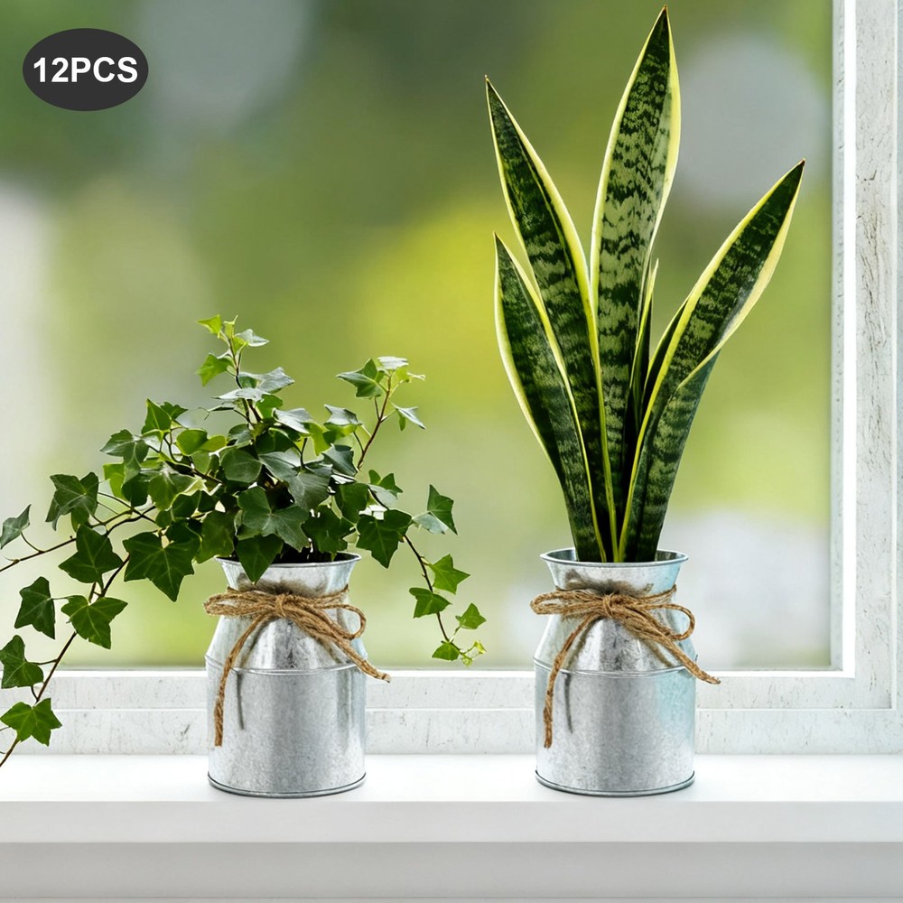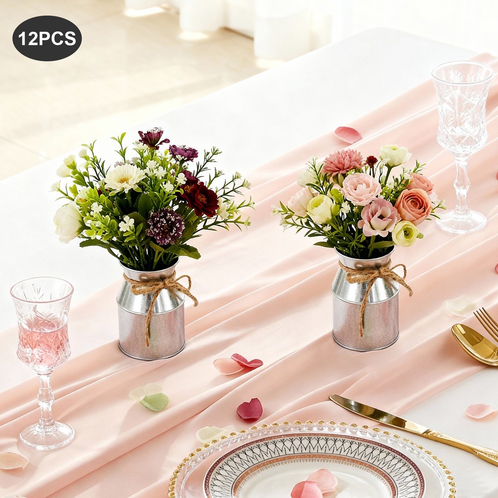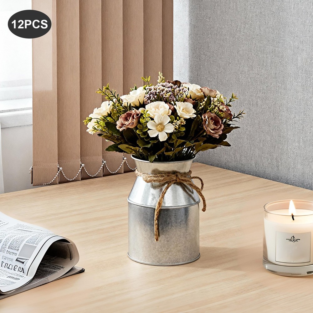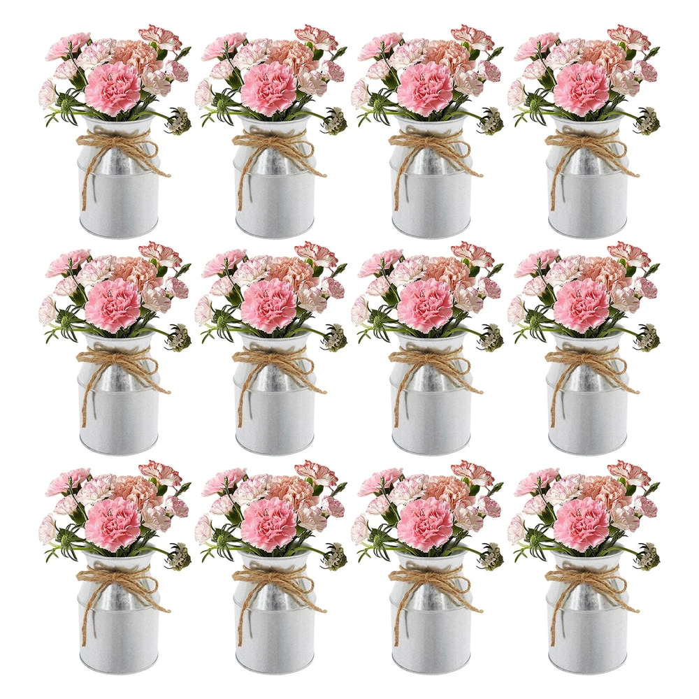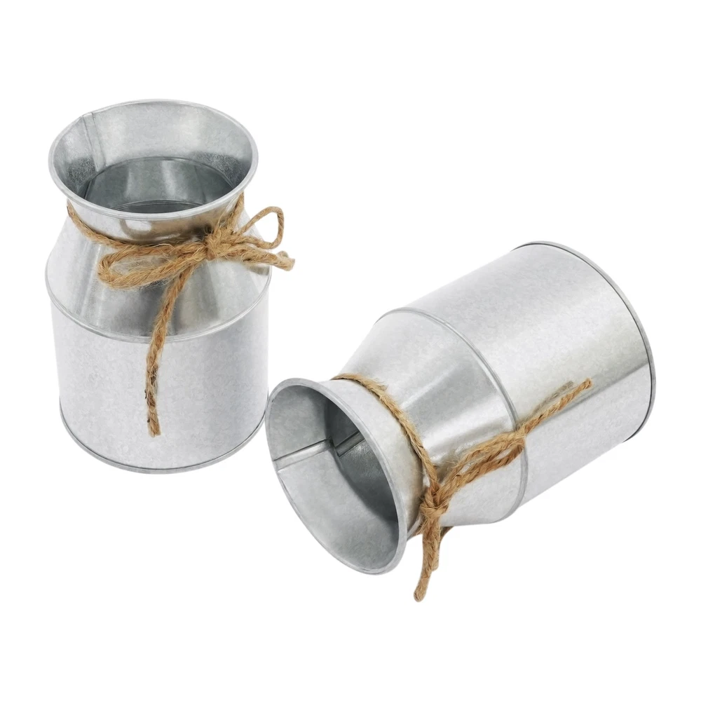 Creative Milk Can Shape Flower Vase 12 Pcs Flowers Vases With Hemp Rope Bow Description This flower vase is a charming addition to your living space. Its compact size allows it to instantly add natural beauty and elegant charm to your desk, dining table, shelf, or other small corner in need of beautification. It brings a warm and inviting atmosphere to your home. This charming tabletop vase is ideal accent in your living space—its compact, space-saving size lets it infuse natural beauty and elegant charm into places, whether it’s your desk, dining table, shelf, or even a tiny nook that needs a touch of sprucing up. Use it as a standalone decor piece to add subtle elegance; it wraps your home in a warm, welcoming atmosphere that feels both cozy and refined. Key Features Premium Material: The item is made of galvanized iron with a baked paint treatment, making it sturdy, water-repellent , and rust-inhibiting . So it can remain practical and beautiful without frequent replacement. Longevity You Can Trust: Crafted from sturdy galvanized iron, with a baked paint process, the robust structure stands up to deformation, ensuring your decor remains beautiful over time. Stylish Decor: Each vase is designed with a hemp rope bow for added rustic appeal, infusing your home with traditional country charm. Expression of Exceptional Taste: It features a sleek body wrapped in a hemp rope bow, adding a natural, vintage charm to the piece, infusing the otherwise minimalist form with a touch of rustic character. Reasonable Size: The base( 3.75 inches) and height( 5.12 inches) make this product an excellent decoration for placing on the table. The 3.27 in ches large opening diameter can hold more flowers(not included) for more beautiful arrangements. Ideal Proportions: With a 3.75-inch base and 5.12-inch height, this vase is ideally sized for tabletop placement, making it a fit for desks, dining tables, or shelves. Its generous 3.27-inch opening easily accommodates more fresh blooms or artificial flowers (not included), allowing for fuller, more stunning arrangements that elevate your decor. Convenient to Use: The one-piece construction allows you to use the product in flower arrangements directly after receiving it without the need for complicated assembly. Ready-to-Use Convenience: Featuring a one-piece integrated design, this vase is fully usable right out of the box. You can start arranging your favorite flowers immediately after receiving them, saving you time and hassle. Set of 12: The design of the set of 12 allows you to place different flowers in each vase, creating different beautiful scenes to meet your needs. Sufficient Quantity: This set includes 12 flower vases. The generous quantity can make these vases ideal for creating coordinated tablescapes or decorative arrangements across multiple rooms. Details Round Edges: Smooth edges are not only comfortable to the touch, but also enhance safety in use. Elegant Arcs and Delicate Edges: The carefully designed rounded corners and smooth edges not only endow the product with an aesthetic sense of refinement but also significantly enhance the safety of use. Hemp Rope Bow: This design not only adds visual depth but also lends a natural, rustic texture, enhancing the vase's distinctive character. Exquisite Hemp Rope Bow Accent: This thoughtful embellishment does more than just add visual depth—it brings a soft, natural rustic texture to the vase, making it stand out among ordinary tabletop decor. Application It is suitable for table decorations at weddings, celebrations, parties, birthdays, festivals, florists, and other special occasions or places. It can be used for floral arrangements and dried flower vases, as well as for kitchen utensil storage or as a pen holder. Package Included 12 * Flower Vases Notes This product does not include flowers. Please allow the slight color difference caused by the shooting light and the 1-3 cm error due to manual measurement, and make sure you do not mind before ordering. Payment Delivery details Terms of sales About us Contact us Payment We accept ebay payment 。 Fees such as import duties, taxes are not included in the item price or shipping costs. These charges are the buyer's responsibility. Delivery details Shipping: 2-9 working days to: USA Terms of sales We maintain high standards of excellence and strive for hundred percent customer satisfaction. Feedback is very important to us. We hope that you contact us immediately before you give neutral or negative feedback, so that we can address your concerns. It is impossible to address issues if we do not know about them! About us Your satis faction is our ultimate goal. We work hard to earn your trust and future business. Our certified technicians have tested each item before shipping. The unit comes with 1 year limited warranty on all manufacturing defects. a) If you receive a defective item, you may return it or ask for a discount. Please contact us within 14 days after you receive the package. b) What you returned must be intact and in its original packaging as re? u. Customer is responsible for shipping costs of the returned item. c) We will cover the cost of shipping back t with the shipping rate indicated in the registration page. We will send you a new unit or refund the full payment you paid. Thank you. Contact us Business Hour Business Hour: Monday To Friday: 8:30 AM to 5:00 PM (Beijing China time) Due to time zones, our reply to your questions may not be immediately. But within above working time, we will reply your email within 24 hours. If it's non-workdays, please kindly be patient and wait till Monday. Please contact us with ebay message. Please feel free to contact us if you have any questions. Monday To Friday: 8:30 AM to 5:00 PM (Beijing China time) Due to time zones, our reply to your questions may not be immediately. But within above working time, we will reply your email within 24 hours. If it's non-workdays, please kindly be patient and w