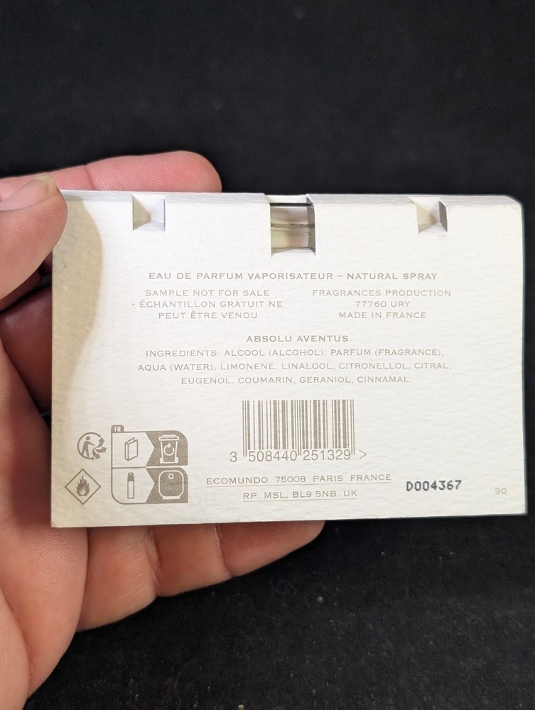 Creed Absolu Aventus 0.057 oz 1.7 ml EDP Spray Premium Mini Travel Sample Vial.