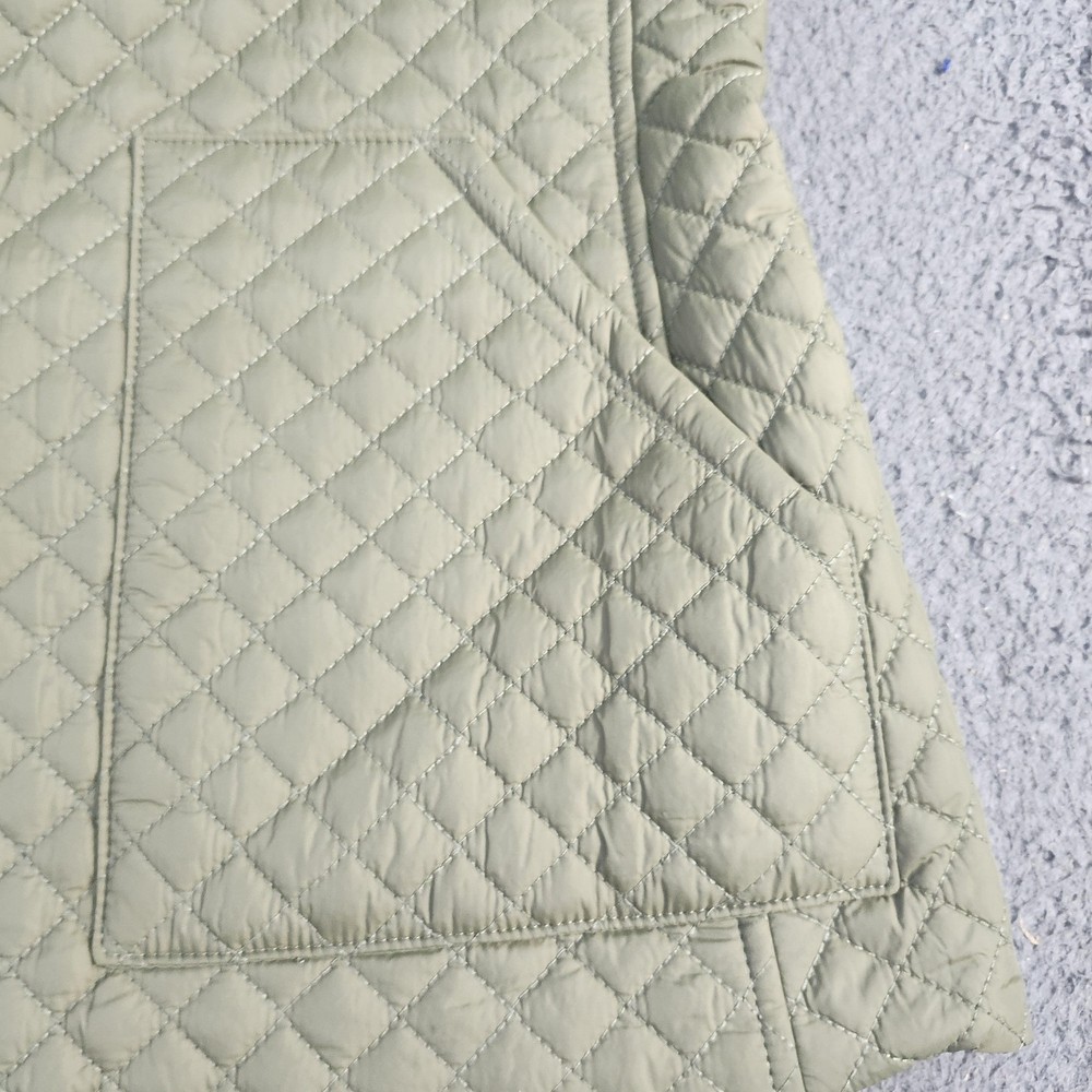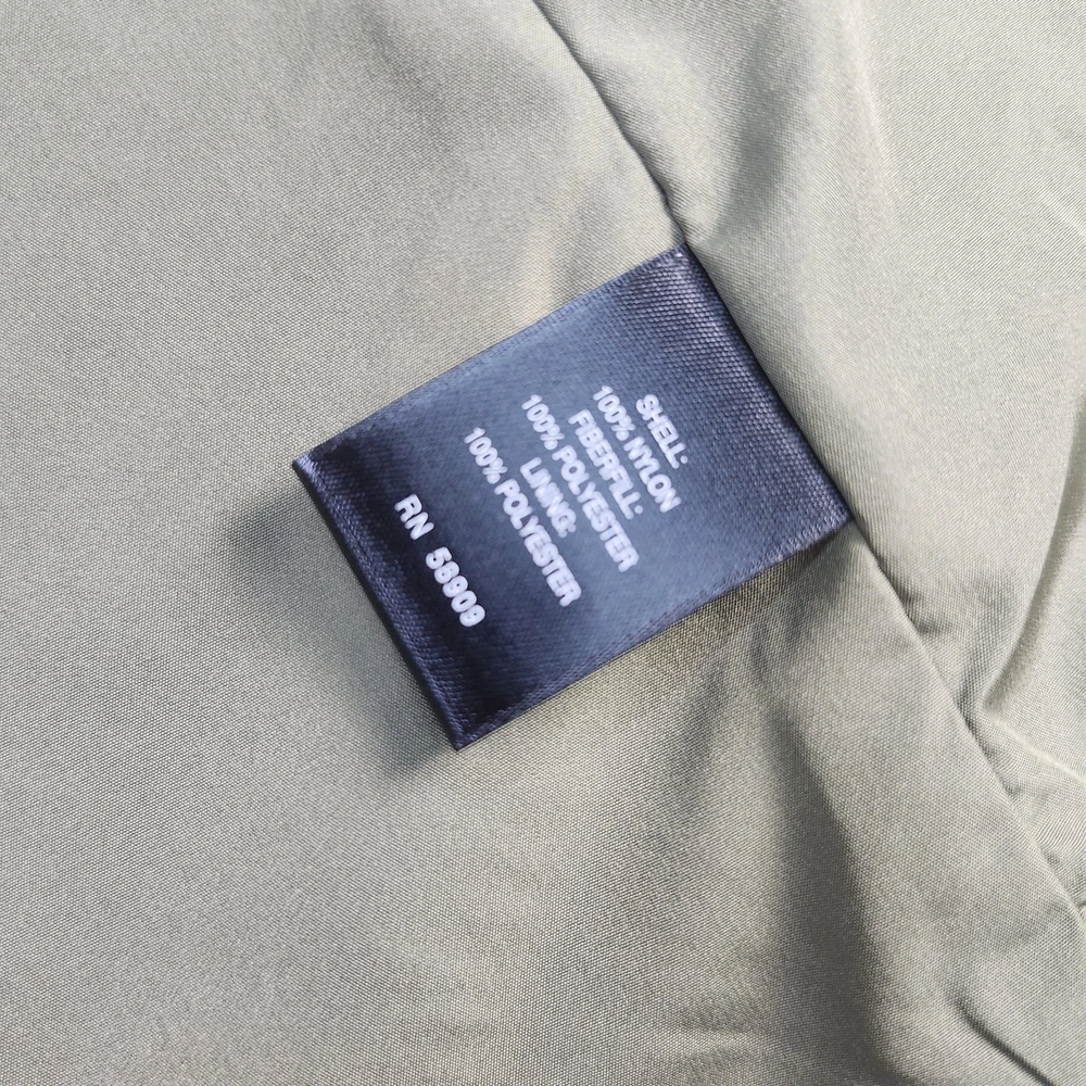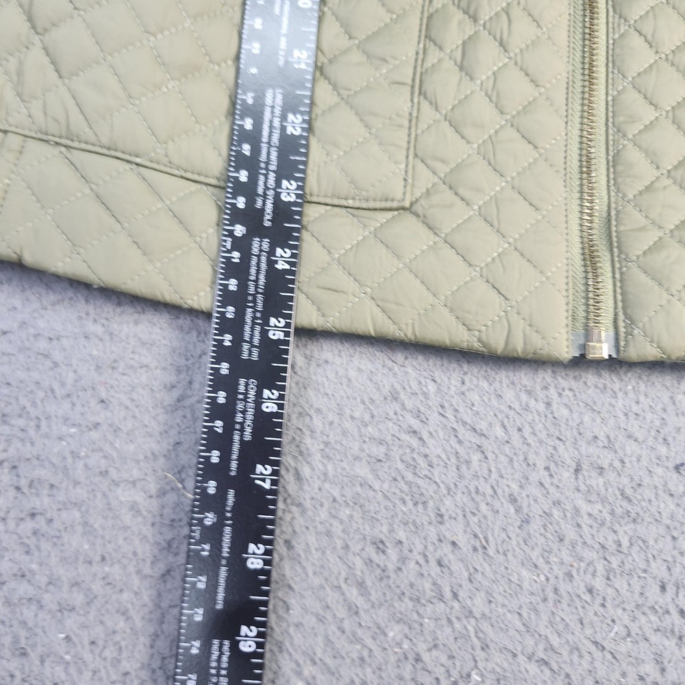 Brand: Cremieux. Style: Mens quilted insulated vest with stand-up collar and full front zip closure. Color: Green. Size: Mens Large (interior size tag reads L). Material: Shell 100% nylon; fiberfill 100% polyester; lining 100% polyester, as listed on the interior fabric content tag. Country of origin: China, as indicated on the interior label. Design details: Allover diamond quilted pattern, two large front patch hand pockets with angled openings, shaped side seams for a regular fit, and a straight hem. Branding and tags: Cremieux logo and wordmark at the interior neck label and Cremieux Heritage branded hang tag attached inside. Features and use: Lightweight padded layering vest with collared neckline, full zip front, and pockets, ideal for casual wear, travel, and layering in fall, winter, and early spring. Tag details: Interior tag lists RN 58903, and the hang tag shows Cremieux Heritage branding with an MSRP of $119.00.