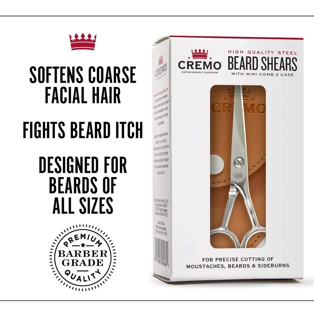 Cremo Beard Accessories, Beard and Mustache Stainless Steel Beard Shears with Synthetic Leather Carrying Case and Comb - Shape, Style And Groom Any Length Facial Hair