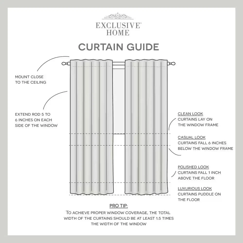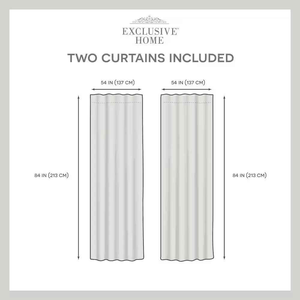 Width (in) x Length (in): 54in x 84 in Number of Panels: Set of 2 Color: Does not apply Product Length (in): 84 in Product Width (in): 54 in Manufacturer Warranty: No Warranty Brand: EXCLUSIVE HOME Type: Does not apply Pattern Type: Solid UPC: 313051715749 Indoor/Outdoor: Indoor Color Family: Blue Included: No Additional Items Included Returnable: 90-Day Room/Location: Bedroom,Dining Room,Home Office,Kitchen,Living Room Fabric Type: Layered Hanging Style: Back Tab Features: No Additional Features Color/Finish: Indigo gtin13: 313051715749 Individual/Set: Set Material: Polyester (100%)