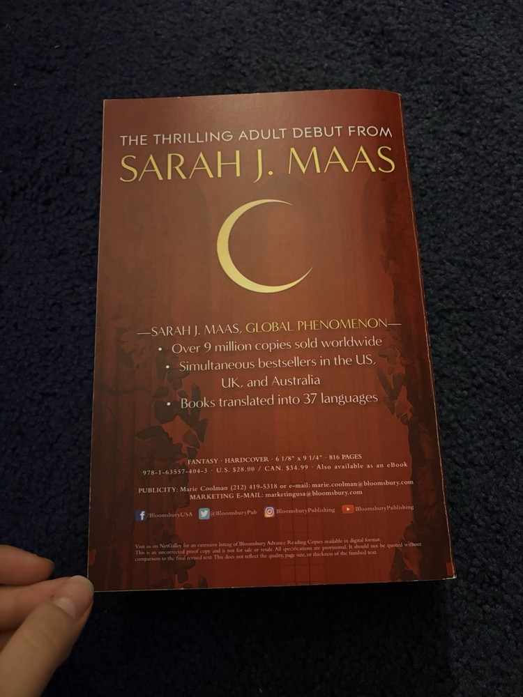 Crescent City ARC. In good condition but please note that it has been written in. There are some pen and penciled in notes throughout the book. General shelfware seen on corners and edges, slight dent in spine. Please see all photos, and reach out with questions if you have any! Comes from a smoke free pet friendly home!