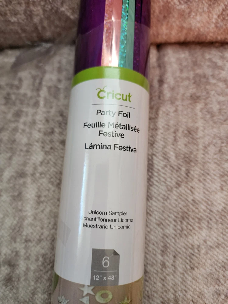 Add a touch of glamour to your cards and crafts with Cricut Party Foil. This pack includes two sheets of solid and holographic sparkle in a stunning white color. Great for making confetti and party decorations Purple, light pink and teal.
