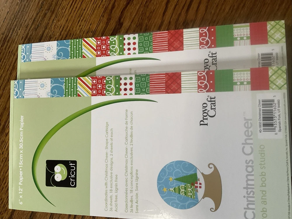 Cricut Provo Craft Christmas Cheer paper- 6” x 12” rob and bob studio. Coordinates with Christmas Cheer Cricut shape cartridge. 2 packages. Both are new/sealed. 36 sheets in each package.