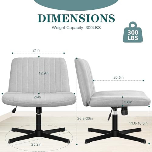 Return Policy Fast Delivery Trusted seller Criss Cross Chair, Armless Cross Legged Office Desk Chair with Fabric Padded Seat No Wheels, Swivel Height Adjustable Mid Back Wide Seat Computer Task Vanity Chair for Home Office, Grey Product Description 【Ergonomics】: This U-shaped design of this cross-legged office chair gradually releases pressure on the back and hips from the center to the sides, providing strong support for the back. The backrest and cushion are designed to follow the curve of the human spine, helping to relax the entire body. You can sit in a chair for a long time without feeling any fatigue. 【Comfort Adjustable】: Armless chair seat can be rotated 360°. By turning the knob under the seat cushion, the seat can swing back at an Angle of 21°. 【Larger Seat Width】: If you like to sit cross-legged in an office chair, if you are looking for a wide office chair, this 22-inch wide cross-legged office chair is just for you. The spacious seating and ergonomic construction will give you a comfortable and relaxing seating experience, specially designed for sedentary people. 【Easy Assembly】: This dresser chair comes with all the hardware and necessary tools, as well as detailed instructions. It's easy to assemble this chair yourself in your office or at home, taking just 20 minutes. 【Elegant Style】: The design is simple and elegant, and the armless chair allows it to push under the desk when not in use, making it easier to store and save space. The elegant appearance makes this chair suitable for all rooms. Shipping Returns Payment Shipping Shipping is FREE to all addresses other than APO/PO boxes in the lower 48 states. All our stock ships from US-based warehouses. Shipped via USPS or UPS (depending on location and package weight) Unless stated otherwise, all orders will ship within 24-72 hours of your payment being processed. Check our feedback to see the great reviews of FAST shipping we offer. Returns Seller does not accept returns Payment We currently accept payment via eBay managed payments only. Once payment is cleared, we will dispatch your shipment within 1-3 business days. Please refer to the "Shipping" tab for more information regarding shipping speed to your destination.