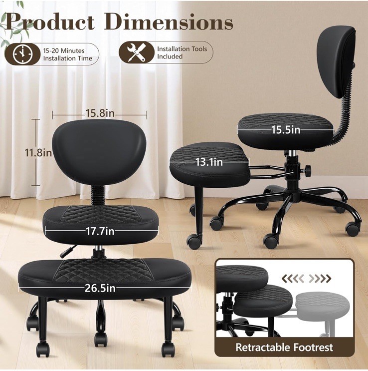 some scratches on the gas lift please see picture with the red arrow Ergonomic Cross Legged Office Chair with Wheels - Adjustable Height for Meditation, ADHD Desk & Yoga - Wide Criss Cross Design with Lumbar Support, Kneeling Chair - Black • Versatile Seating Positions for Home, Office, and Gaming: Our cross legged chair is perfect for those who prefer sitting in various positions like cross-legged, squatting, or kneeling, providing comfort and flexibility for yoga enthusiasts, meditation practitioners, and active sitters • Active Sitting Chair for Fidgety Sitters: Designed for those with ADHD or needing frequent position changes, this ADHD desk chair encourages active sitting to engage your body. Whether you're in the office or using it as a meditation chair with back support, this chair helps reduce discomfort and prevent fatigue • 360-Degree Rotating Footrest: Enjoy unmatched convenience with our innovative footrest that rotates a full 360 degrees. This allows you to effortlessly adjust your posture without shifting the chair. Experience enhanced comfort and support with every movement • Ergonomic Lumbar Support: This ergonomic office chair cross legged features a fixed backrest to provide consistent lumbar support, encouraging healthy posture during work or meditation. Its ergonomic design reduces lower back strain, even during extended sitting periods, making it a perfect meditation chair or office chair • Durable and Easy to Maintain: Frame of the cushion made of FSC-Certified wood. Made with excellent materials including a sturdy steel base and durable casters, this criss cross chair is built to last. The soft PU leather seat is water-resistant and stain-proof, making it comfortable and easy to clean • Modern Design for Versatile Use: Combining modern style and functionality, this office chair for cross legged sitting is perfect for home offices, gaming setups, or meditation spaces. Its sleek, minimalist design fits any environment while supporting cross-legged office chair users with ergonomic comfort • Easy Installation and Worry-Free Aftersales: It can be assembled with the simple tools that come with packing. You can easily complete it in about 15 minutes according to the English instructions. Any problem can be solved by contacting our after-sales service