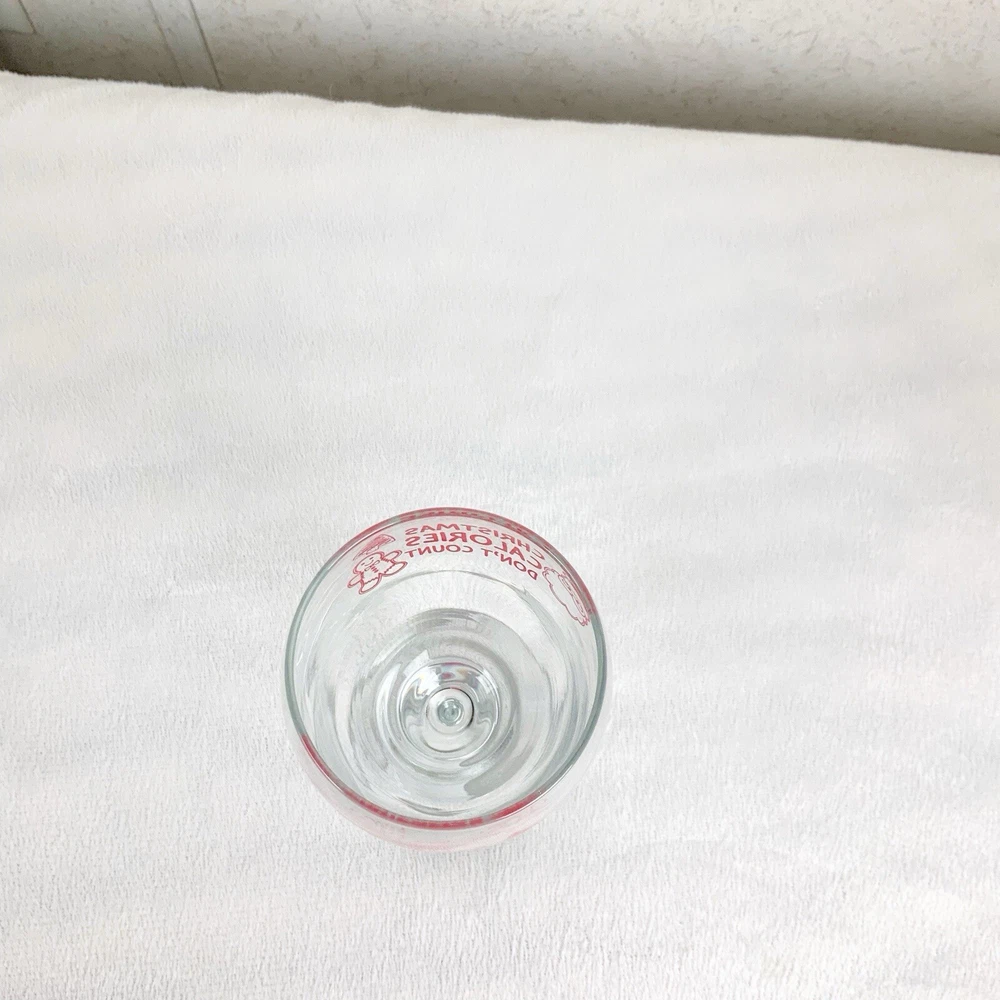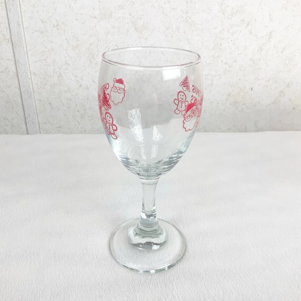 Brand new with tags on the bottom Cristar Set of 4 wine glasses Has Christmas calories don’t count written in red with Santa and gingerbread man 10 oz