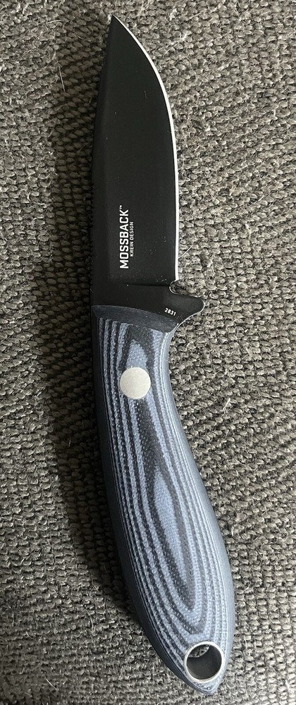 Crkt Mossback Hunter Knife 2831 Fixed Blade Tom Krein G10 Drop Point. Excellent Condition!! It’s a nice dinner knife when a dressed buck is on the menu. The Mossback hunter fixed blade hunting knife offers a drop point blade, G10 handle. This is the one to have on your belt when you’re carrying a lot of venison on your back. Tom Krein from Gentry, Arkansas, truly lived the motto of form follows function when designing this knife. Having served as an ER trauma nurse, he learned a lot about ergonomics and human anatomy. Not to mention the anatomy of animals being an avid hunter. Over the years, he’s used this background and a hefty dose of knife knowledge to create many noteworthy blades. However you use it, the Mossback hunter comes up big on cutting power. Use it with an inverted hold and you’ll find the drop point blade is big enough for all North American game. Yet you can also cap it with your finger while dressing. All that tasty venison meat never saw it coming. With a tough G10 handle, it’s also incredibly durable and feels great in your hand. This knife looks even better in action. If you’re a deer hunter who has been looking for a faster way to process your game, your Mossback hunter has arrived. Discontinued by the manufacturer, this product is no longer available.
