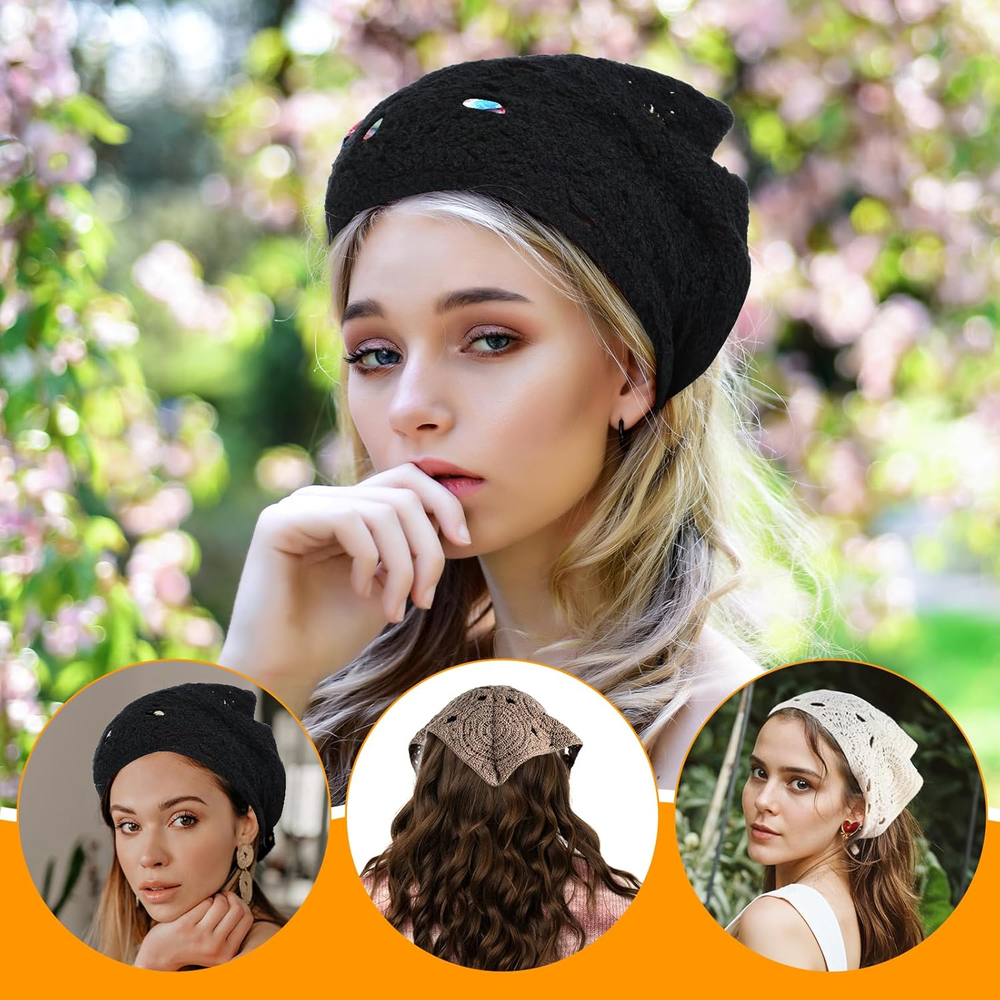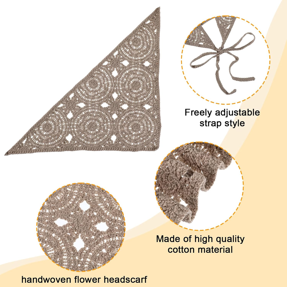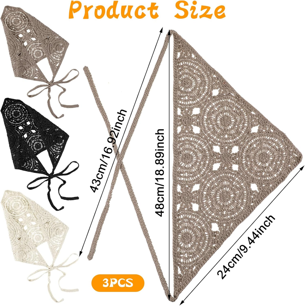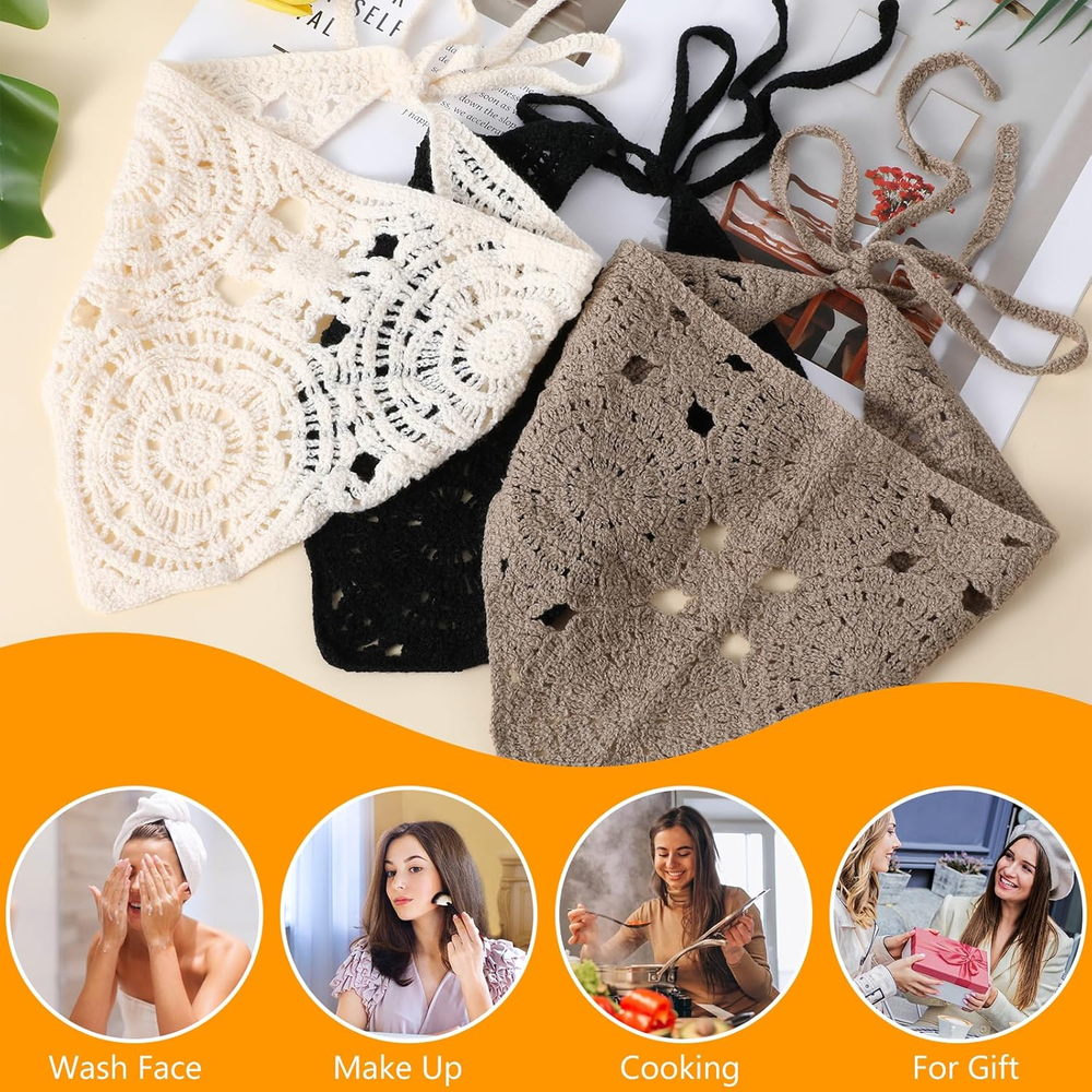 ✨Crochet Bandana, 3 Pcs Hollow Crochet Head Scarf, Crochet Headbands Accessories